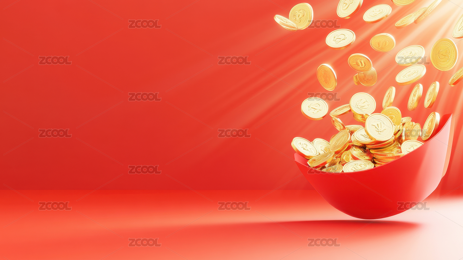 金币从红色碗中溢出