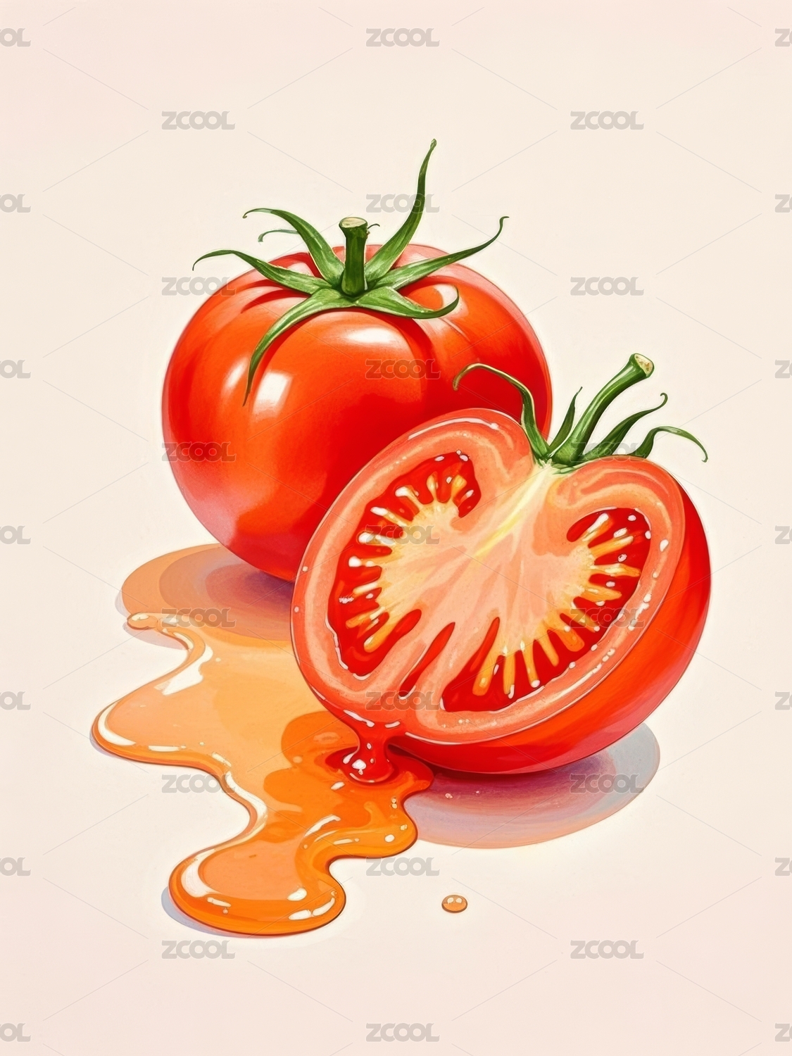 主视觉,番茄,插画,美食,展示,果蔬,新鲜,剖面,红色,食材