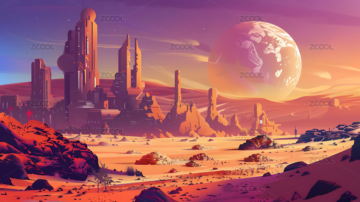太空火星外星星球地貌景观科幻插画