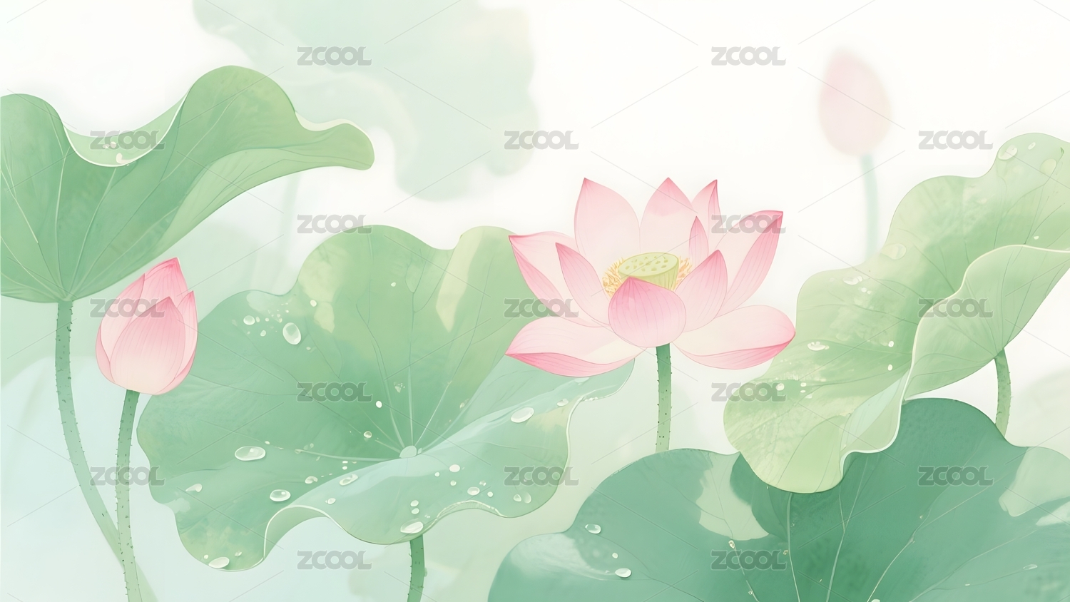主视觉,梦幻,透明,荷花,插画,艺术,国风,幻想,风格,装饰