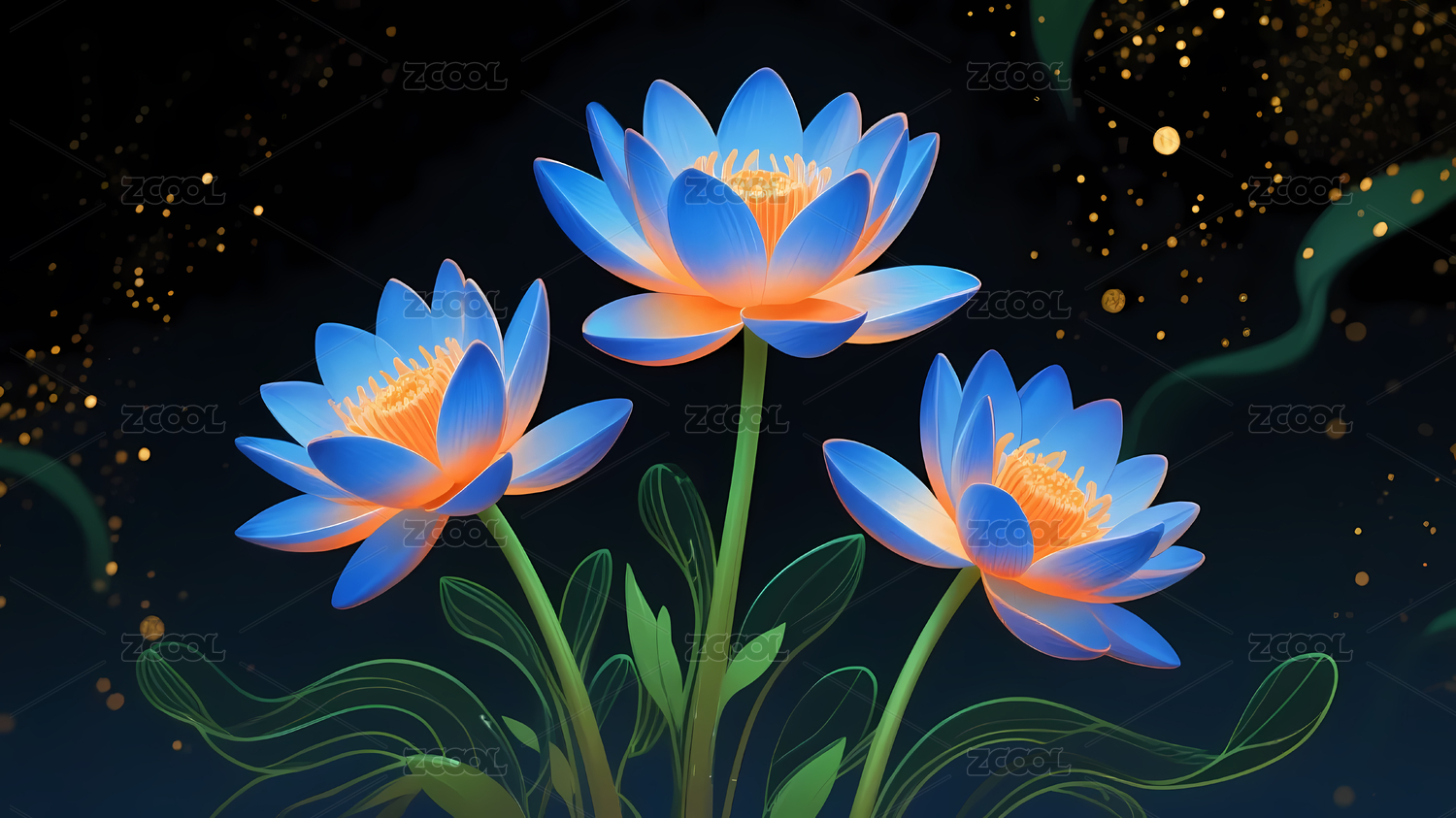 背景,蓝色,梦幻,装饰,深色,绿色,莲花,夜空,星星,草叶