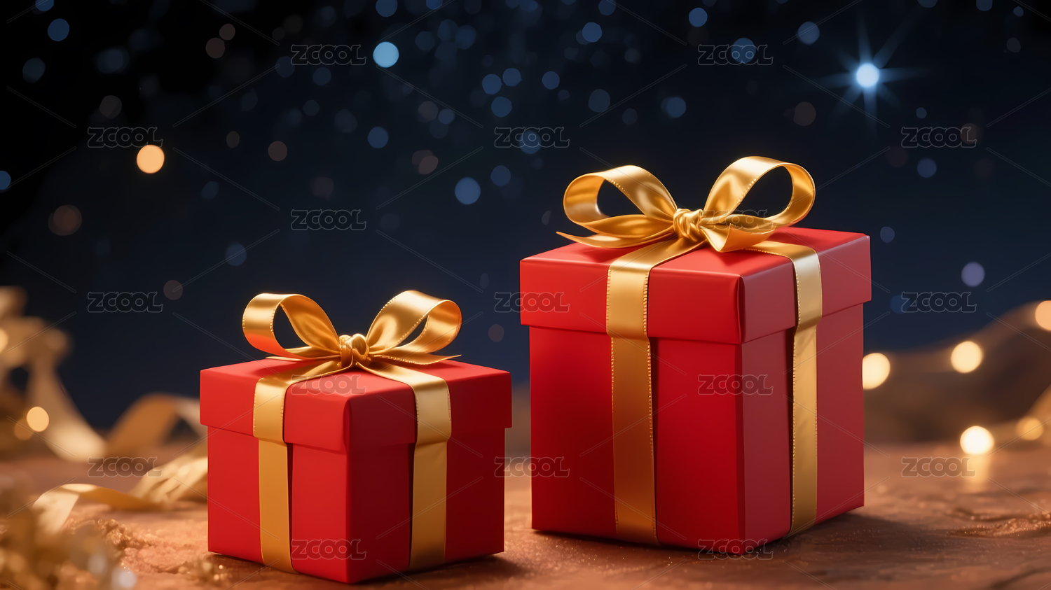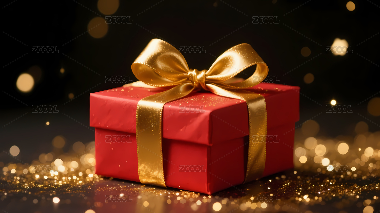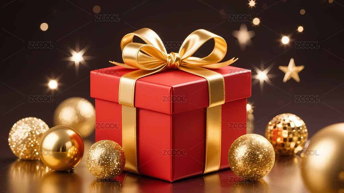金色,红色,深色,礼盒,蝴蝶结,丝带,星星,光点,圣诞球,节日