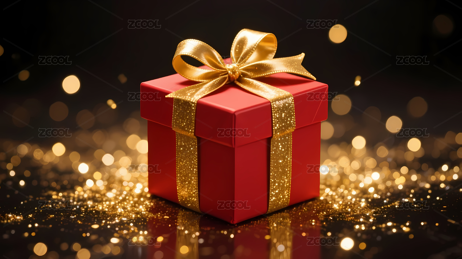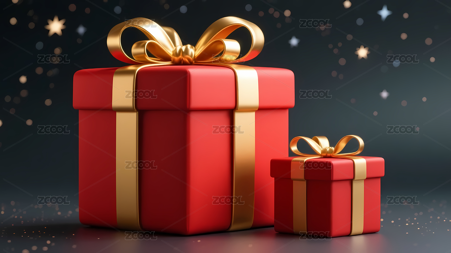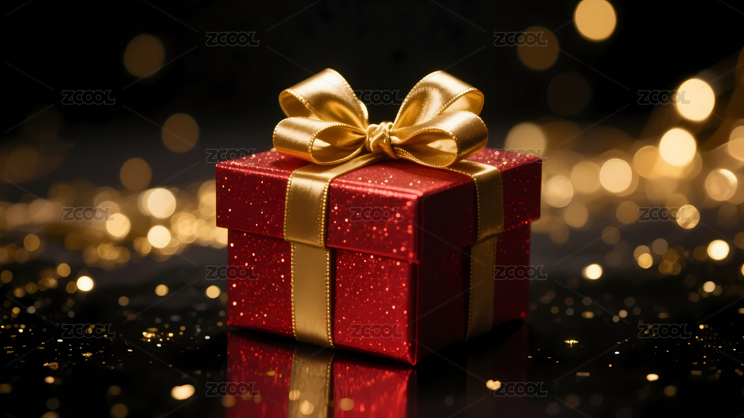金色,红色,深色,礼盒,蝴蝶结,丝带,星星,光点,圣诞球,节日