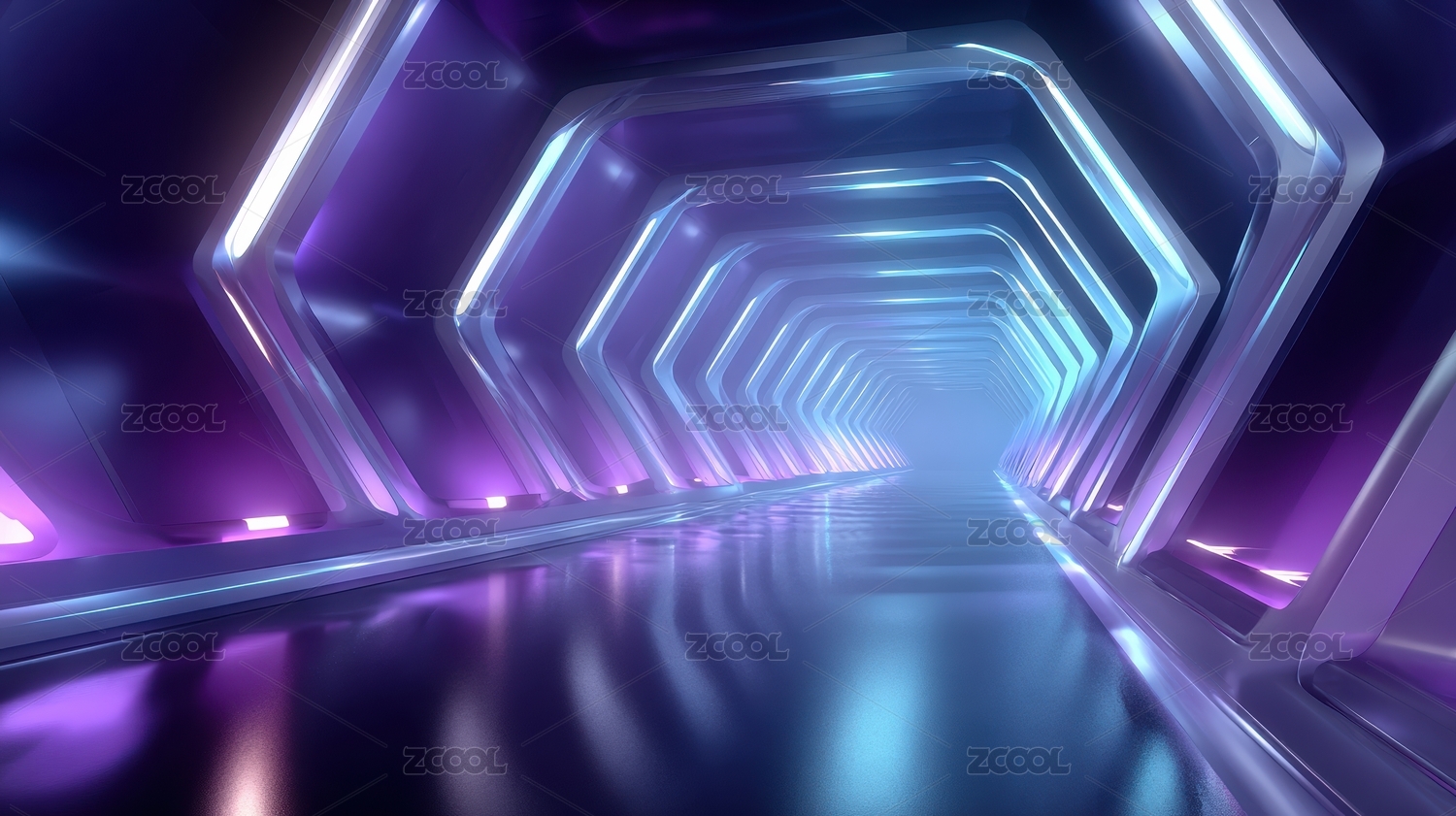未来感六边形霓虹隧道