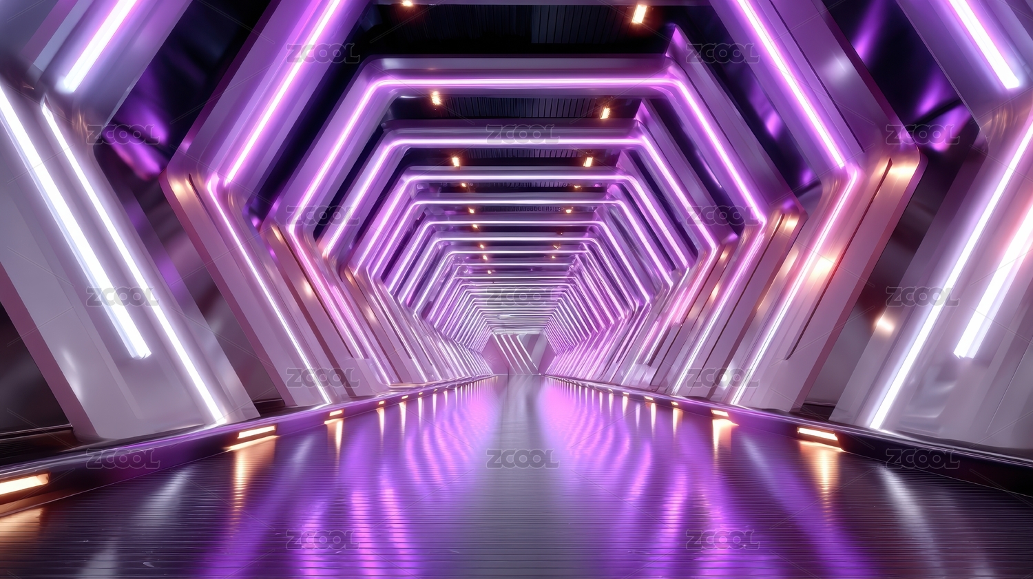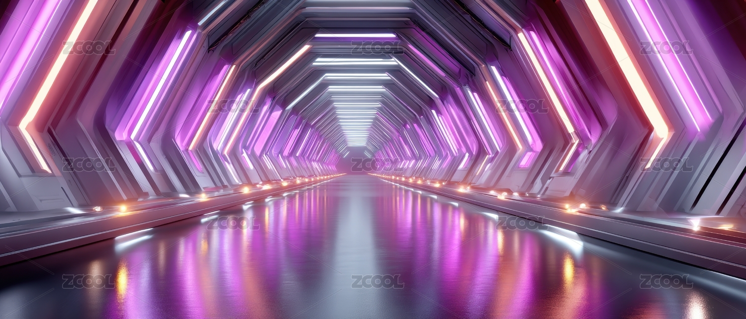 紫色光影的科幻走廊