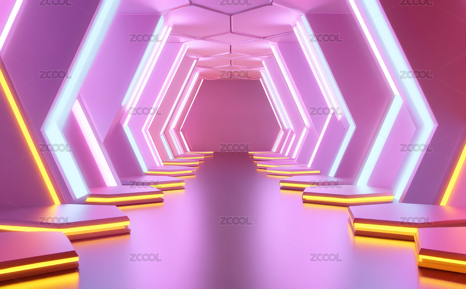 抽象霓虹六边形通道