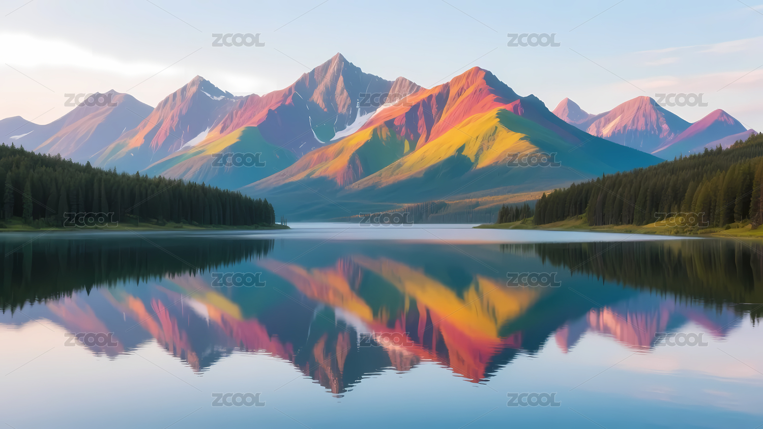 色彩斑斓山脉湖泊倒影
