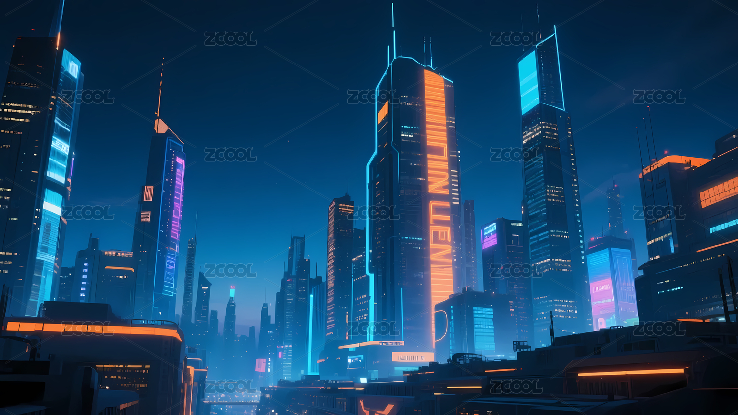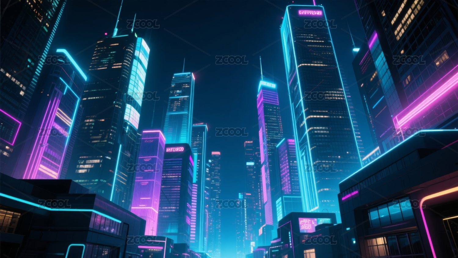 霓虹灯,高楼,建筑,蓝色,紫色,夜空,未来,城市,雾气,科幻