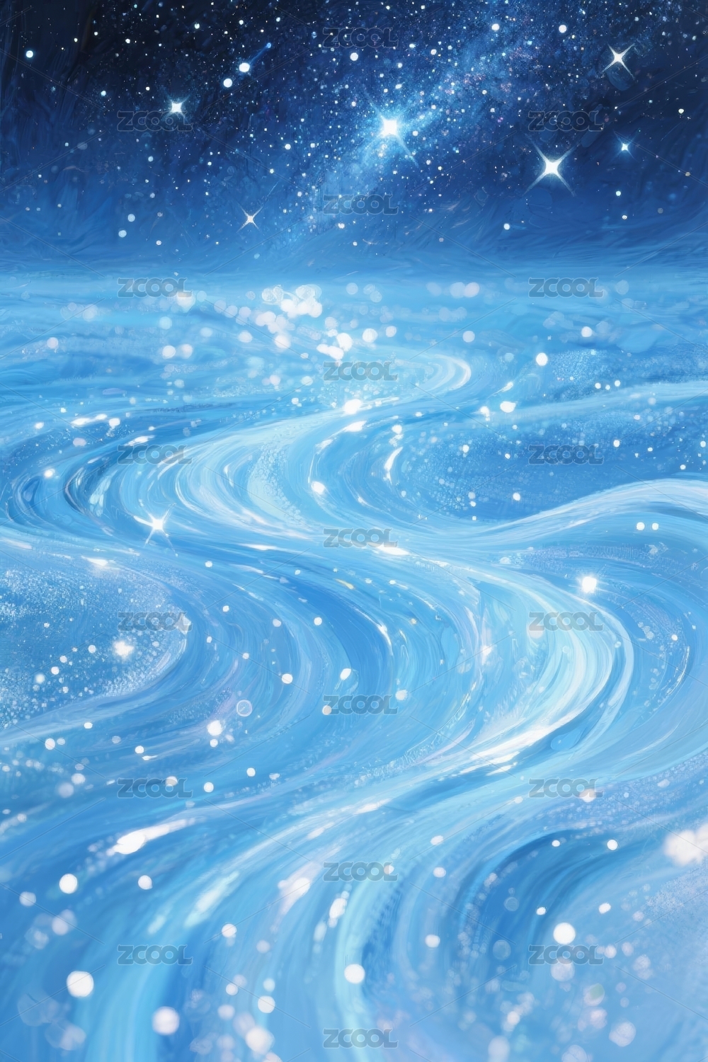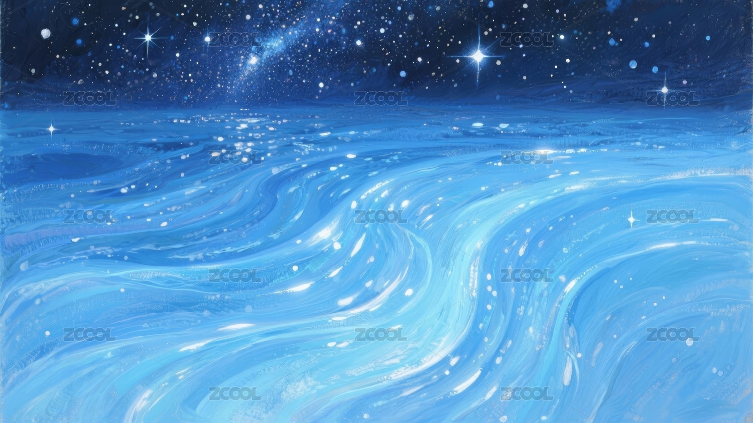 蓝色海浪梦幻感星空背景场景