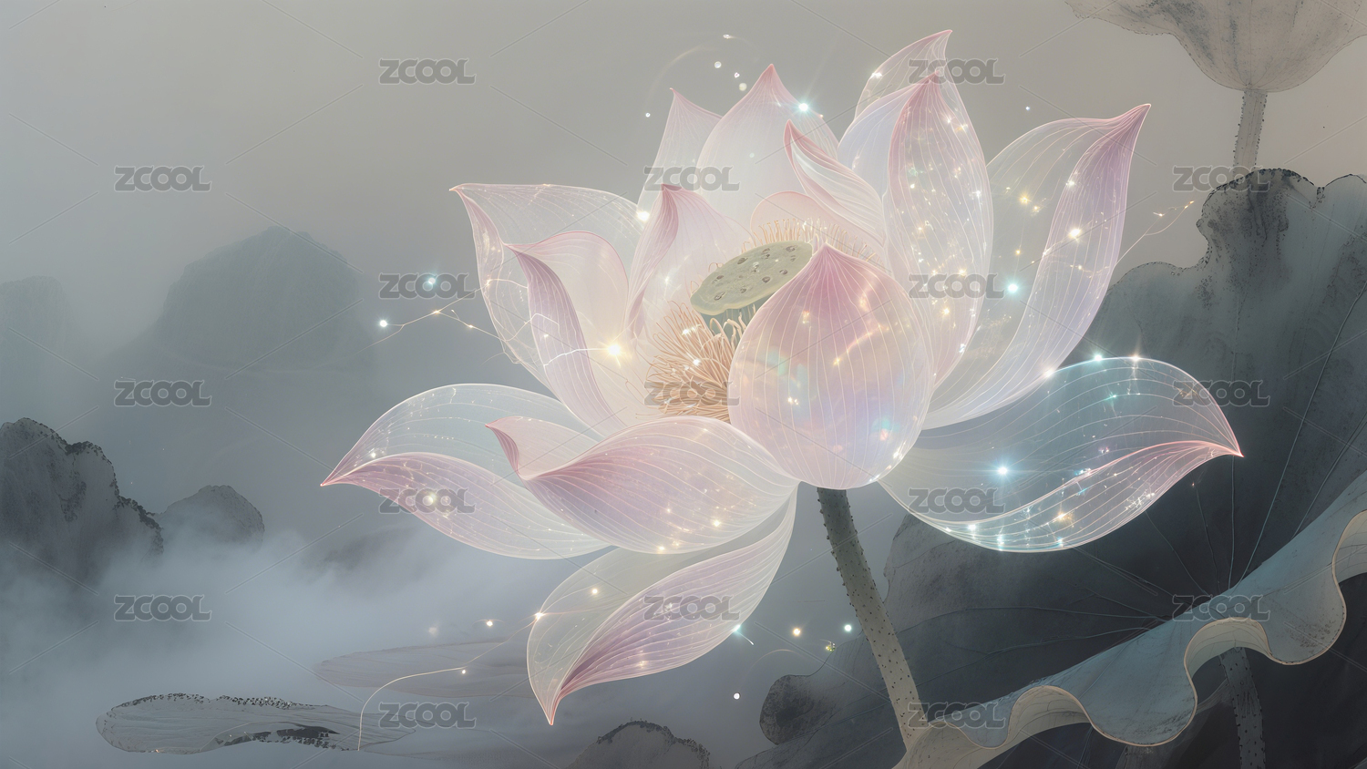 国风,莲花,水墨,新工笔,绿色,海报,电商,背景
