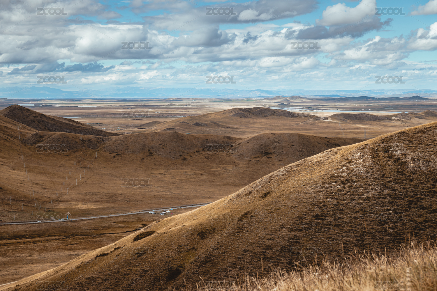 阿坝,若尔盖,草原,山丘,草地,蓝天,白云,原野,自然景观,山地