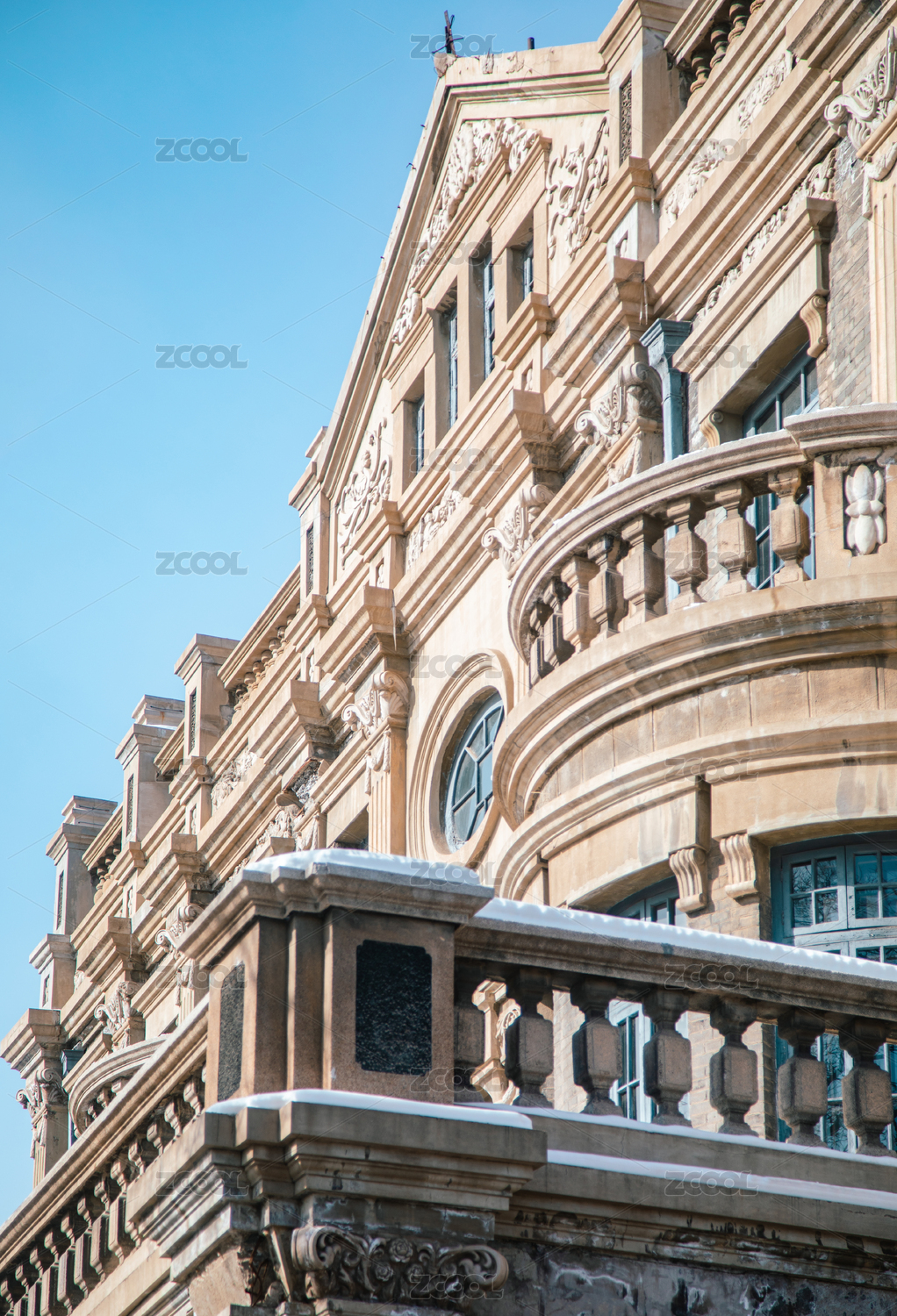沈阳张氏帅府博物馆大青楼老建筑冬日雪景