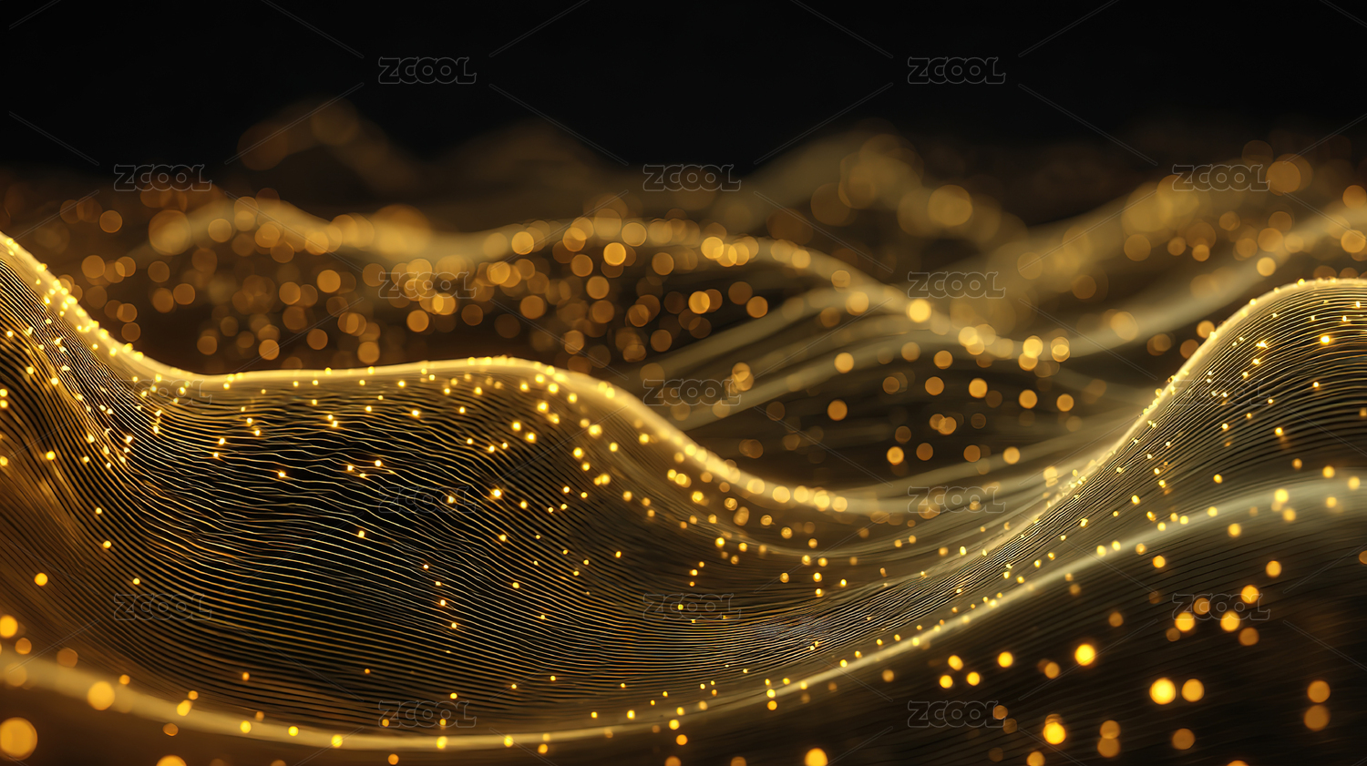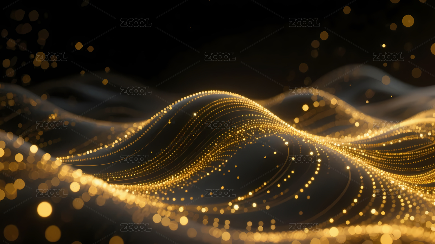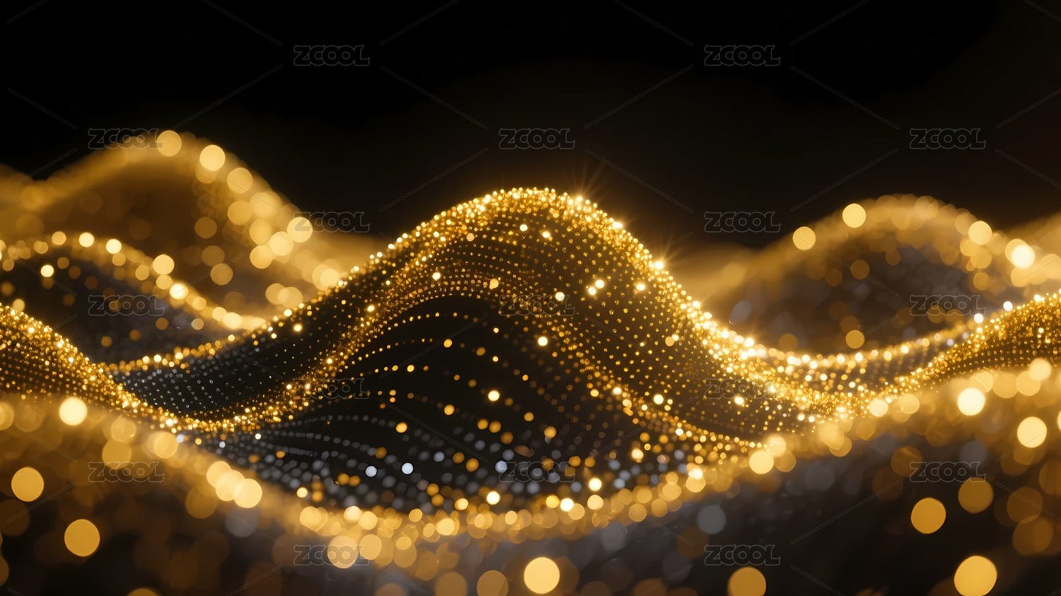 光点,深色,背景,视觉,金色,波浪,效果,璀璨,黑色,动感