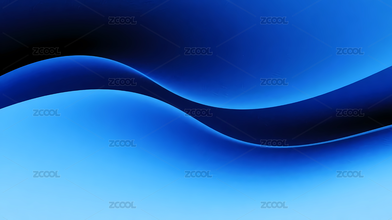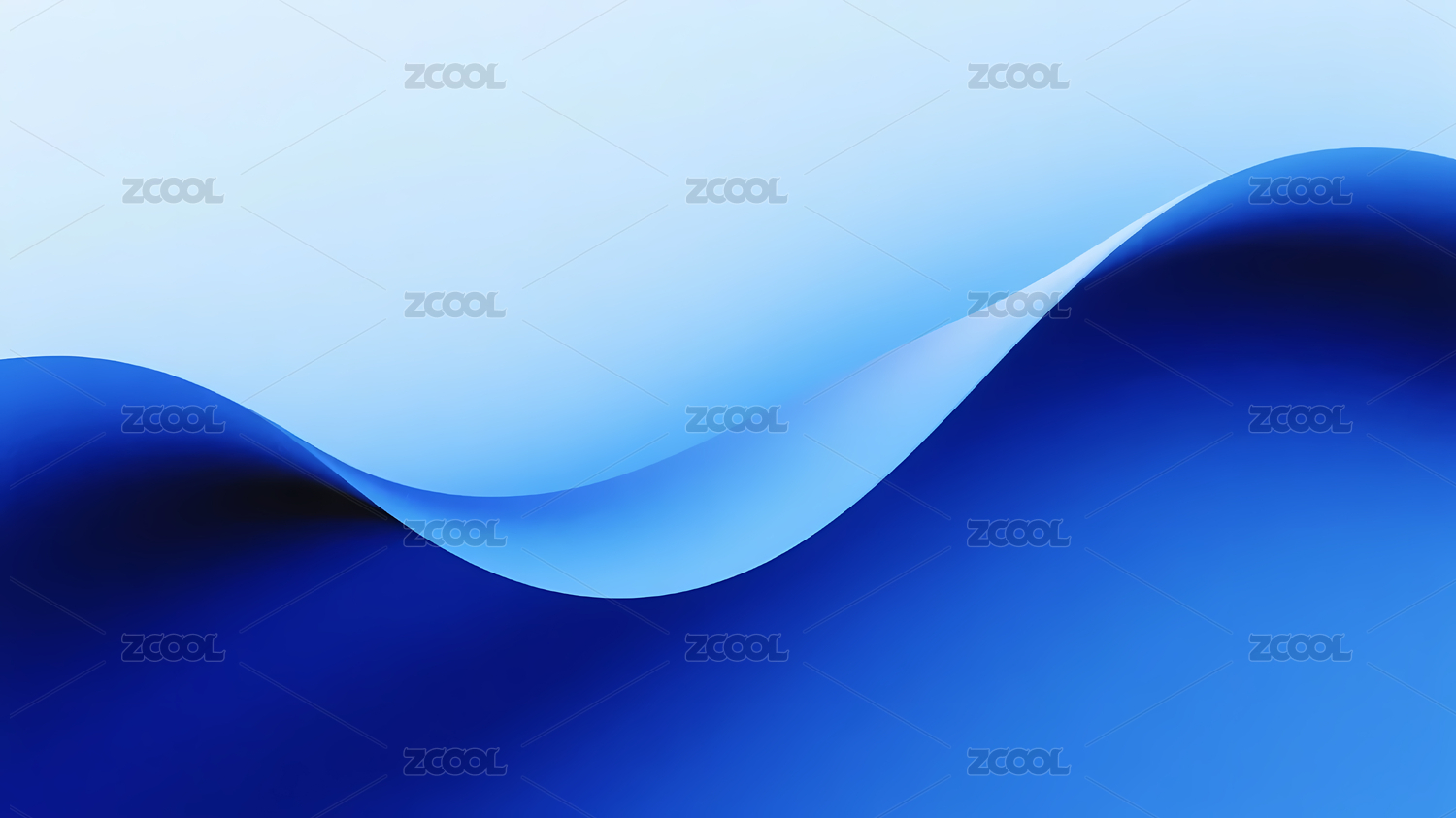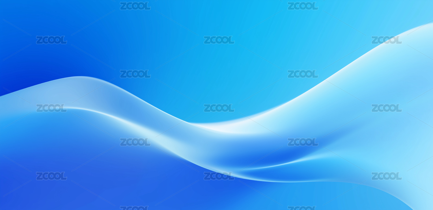 蓝色背景下白色飘带蜿蜒呈现简约治愈的视觉