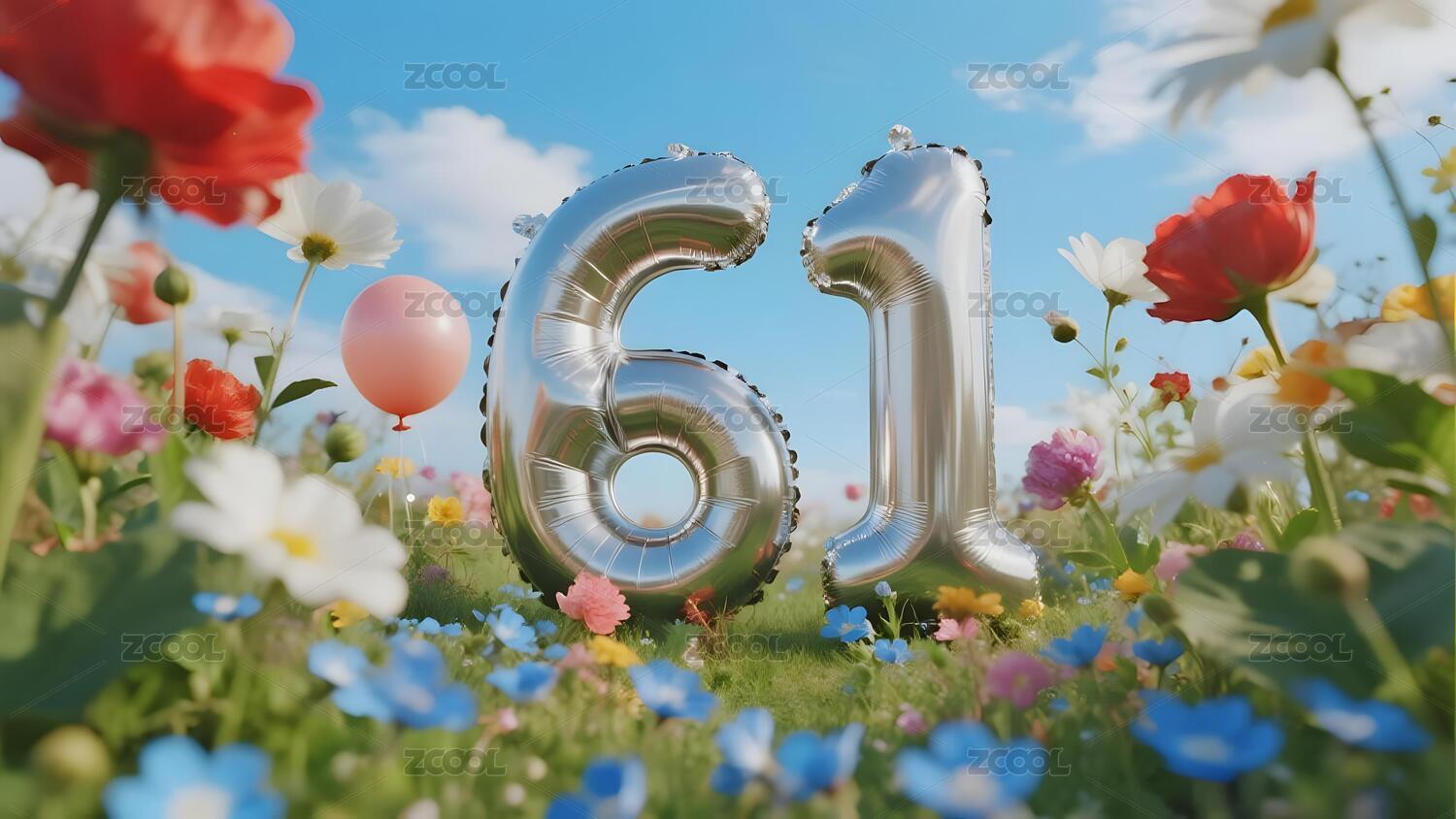 背景,粉色,装饰,鲜艳,数字,植物,花朵,气球,白云,明亮