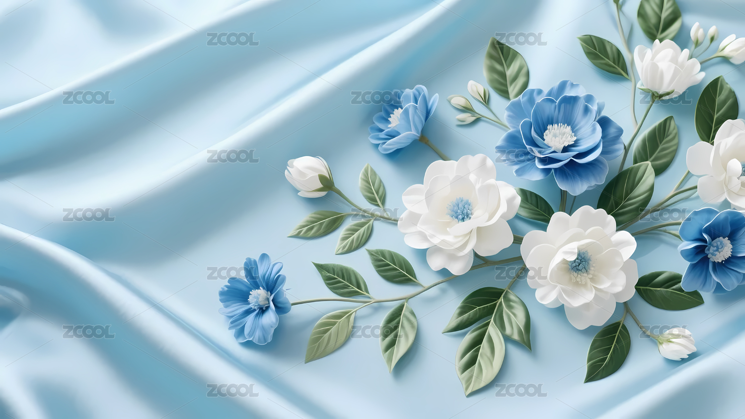 背景,白色,清新,蓝色,柔和,装饰,绸缎,绣花,花卉,优雅