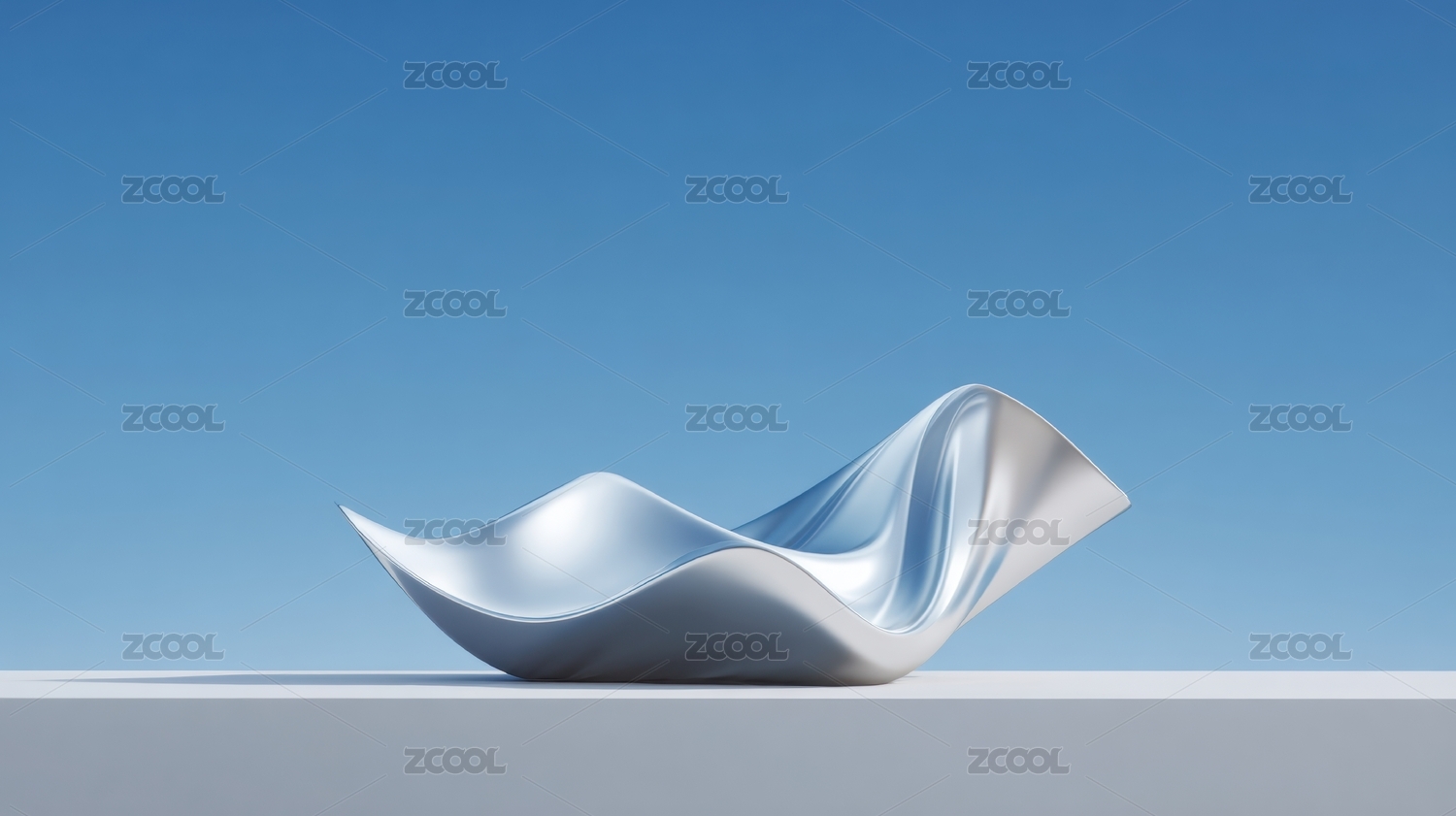 流线型银色雕塑在蓝天背景下的艺术展示