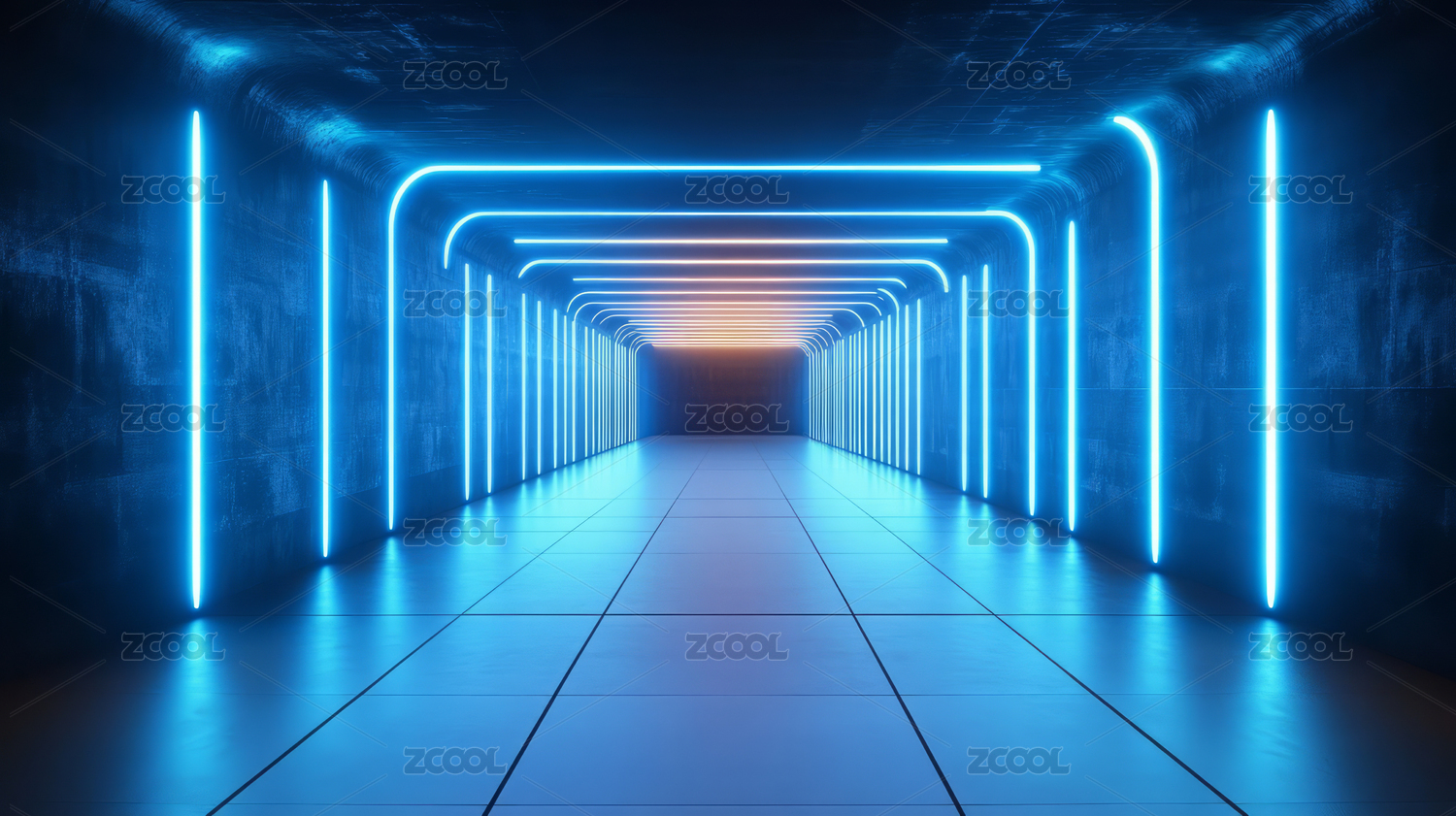 走廊,未来,风格,金属,墙面,黑色,肋条,灯光,橙色,垂直