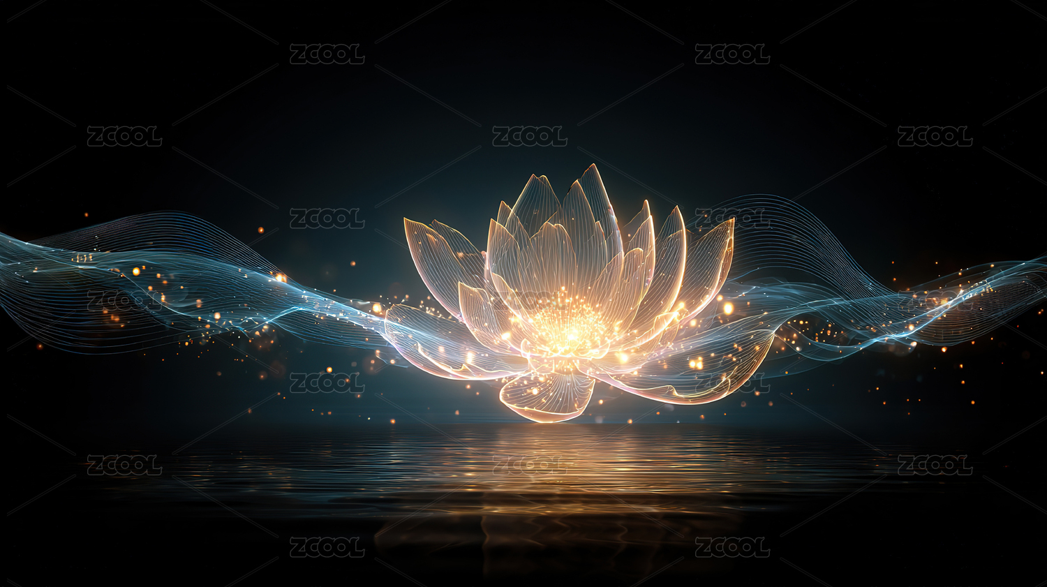 花朵花瓣绽放科技背景抽象数字艺术插画