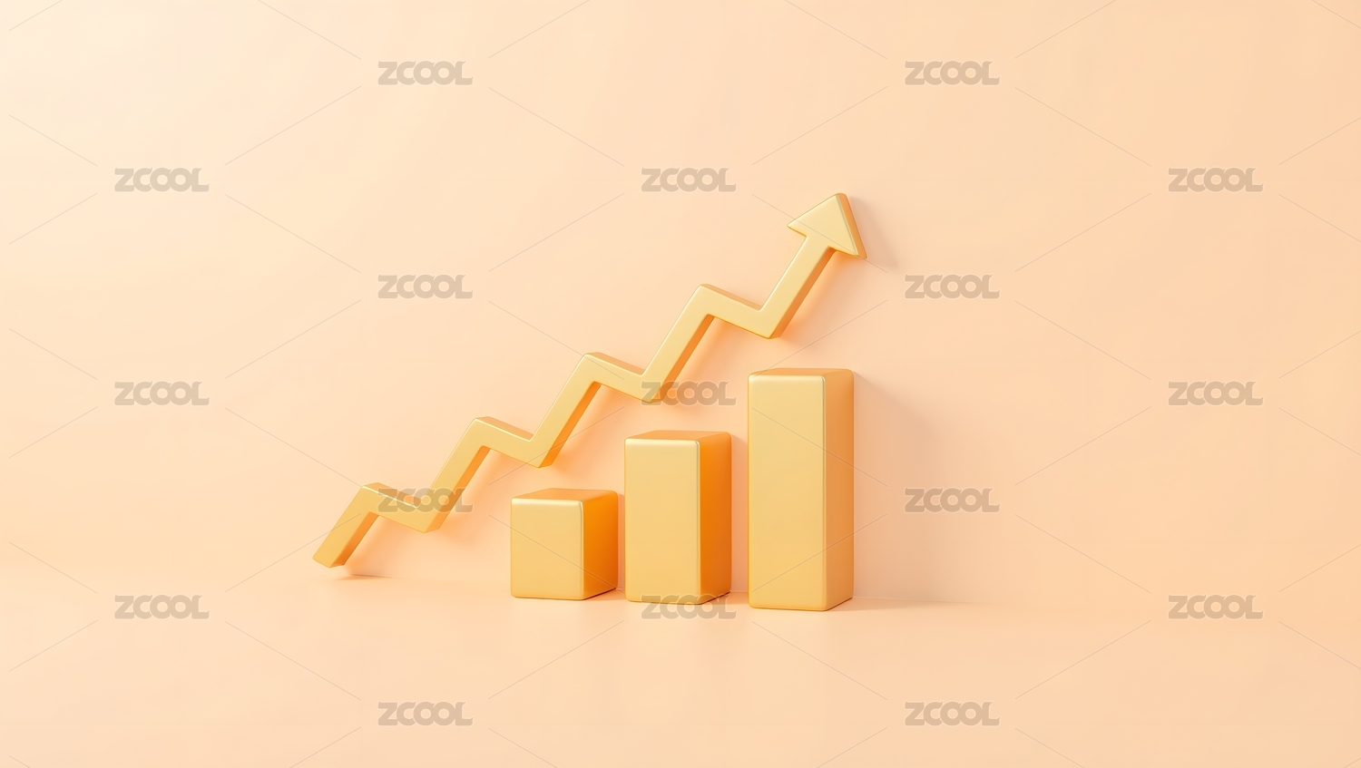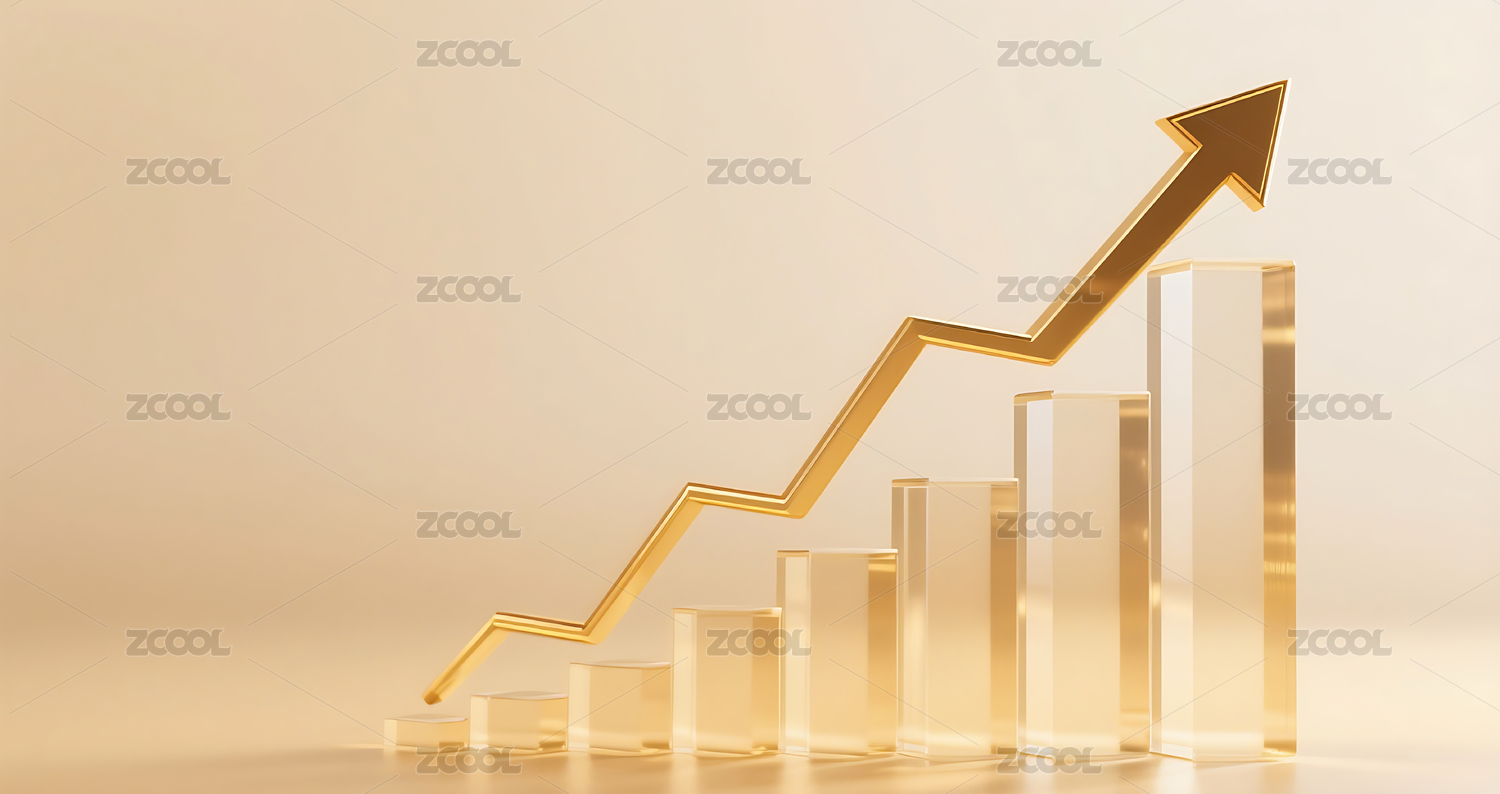 金色渐变玻璃质感金融柱状图增长箭头背景