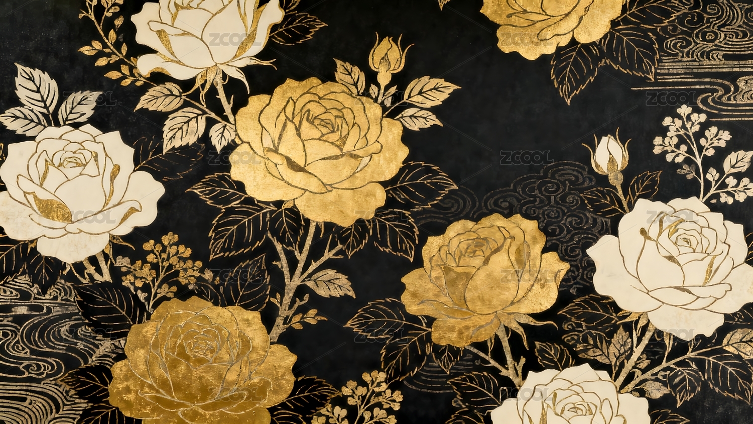 背景,花朵,金色,黑色,叶子,花卉,优雅,高贵,视觉,细节