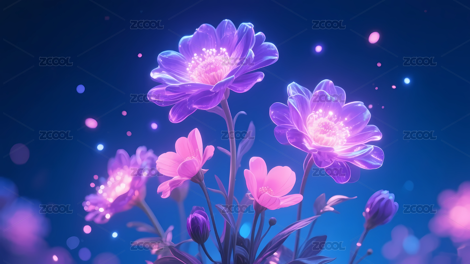3D卡通发光花朵背景