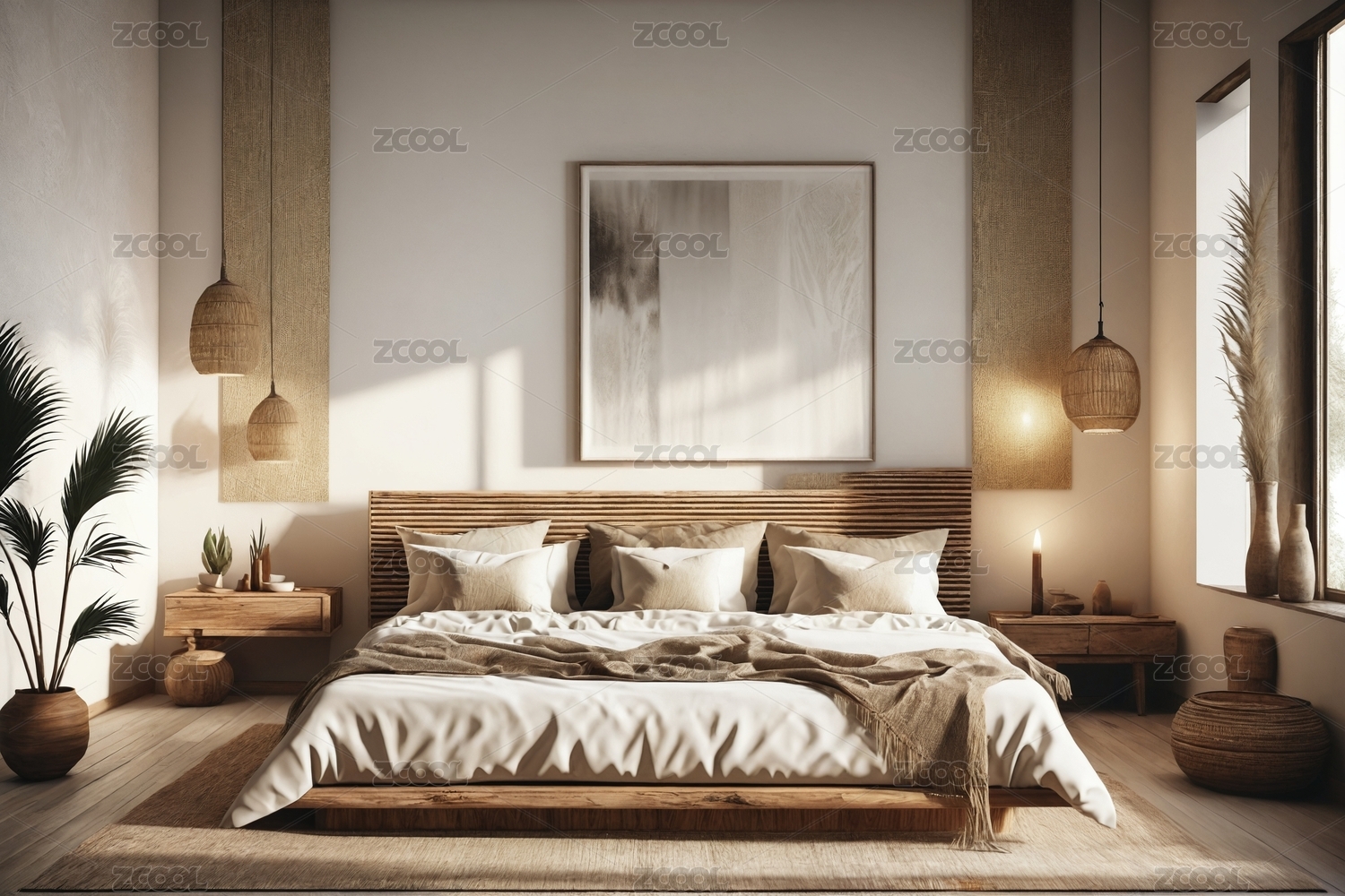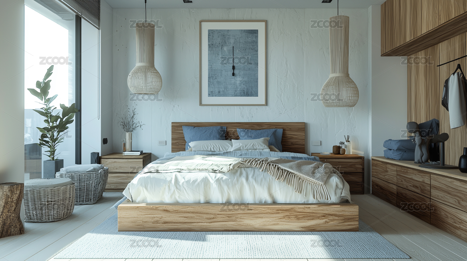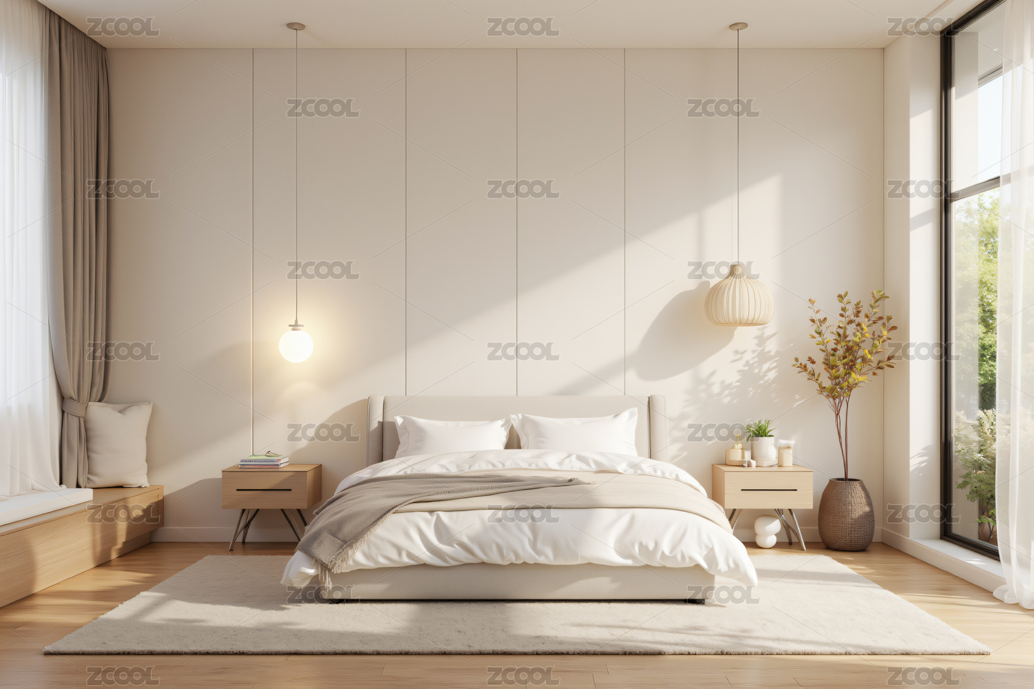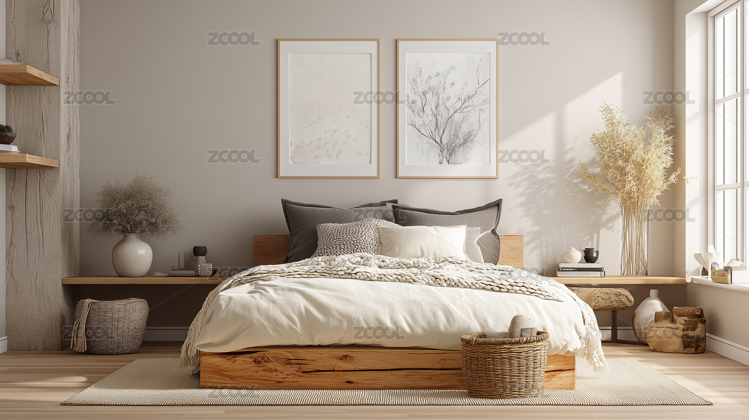 卧室,日式,极简,床铺,榻榻米,平台,木质,色调,米灰,墙面