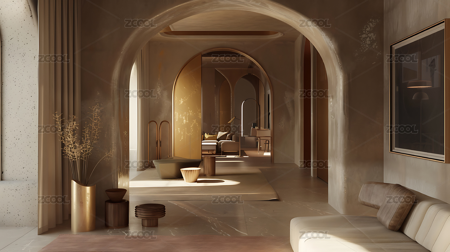 厨房,意式,极简,晨光,岛台,弧形,壁龛,建筑,墙面,灰泥