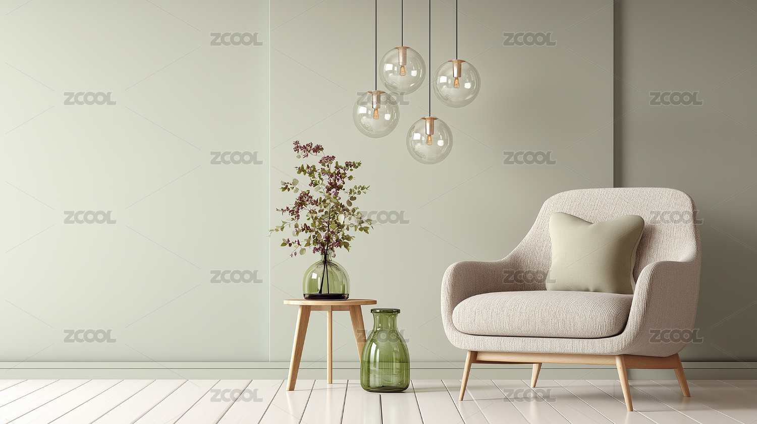角落,阅读,极简,椅子,绿色,金属,框架,墙面,灰色,圆桌