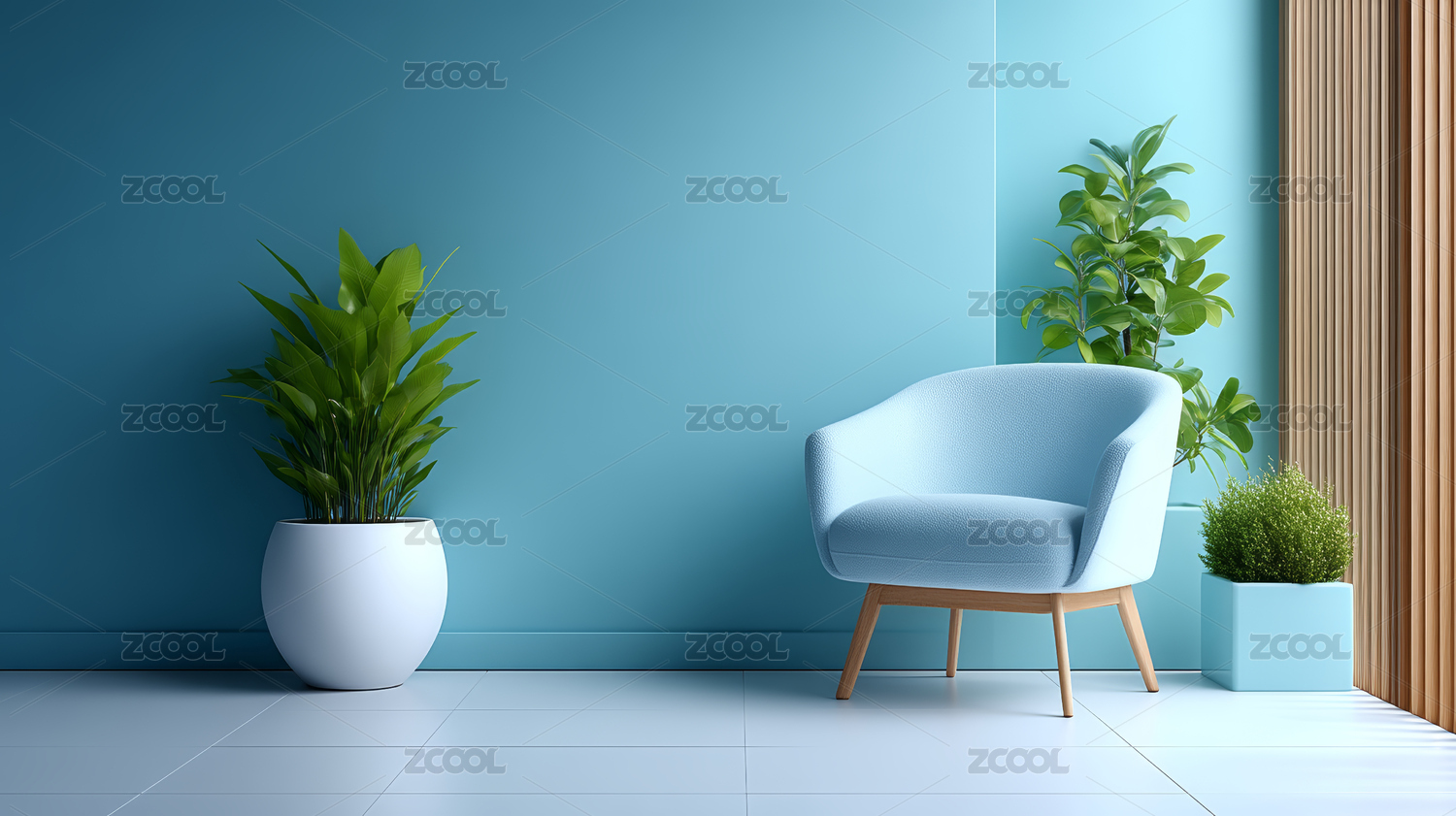 简约风格室内装修设计蓝色风格的墙壁椅子