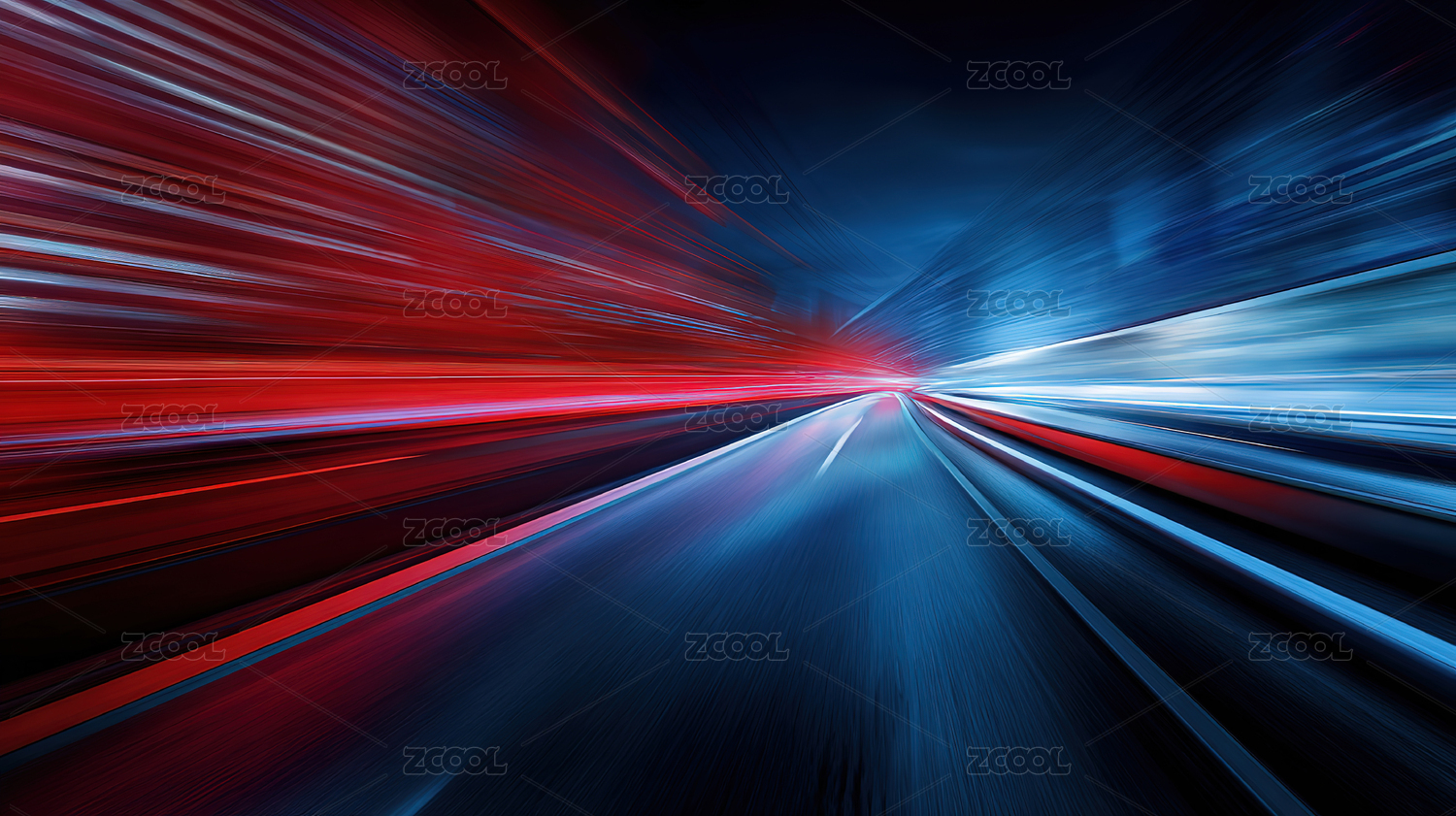 红蓝光线汇聚天空下高速公路