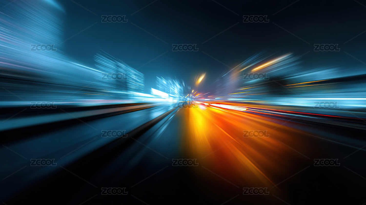夜晚运动模糊的城市高架路面