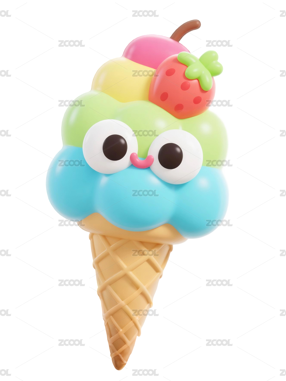 彩虹冰淇淋3d渲染夏天甜品素材