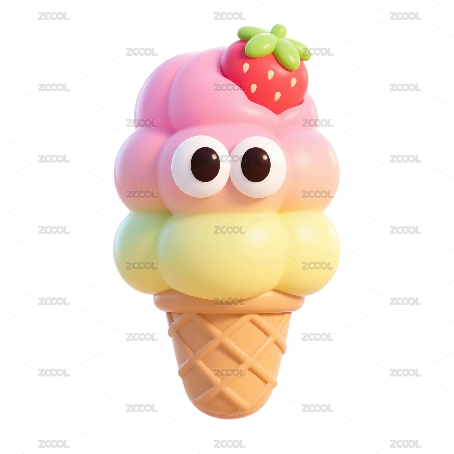 膨胀风可爱卡通造型的多彩冰淇淋