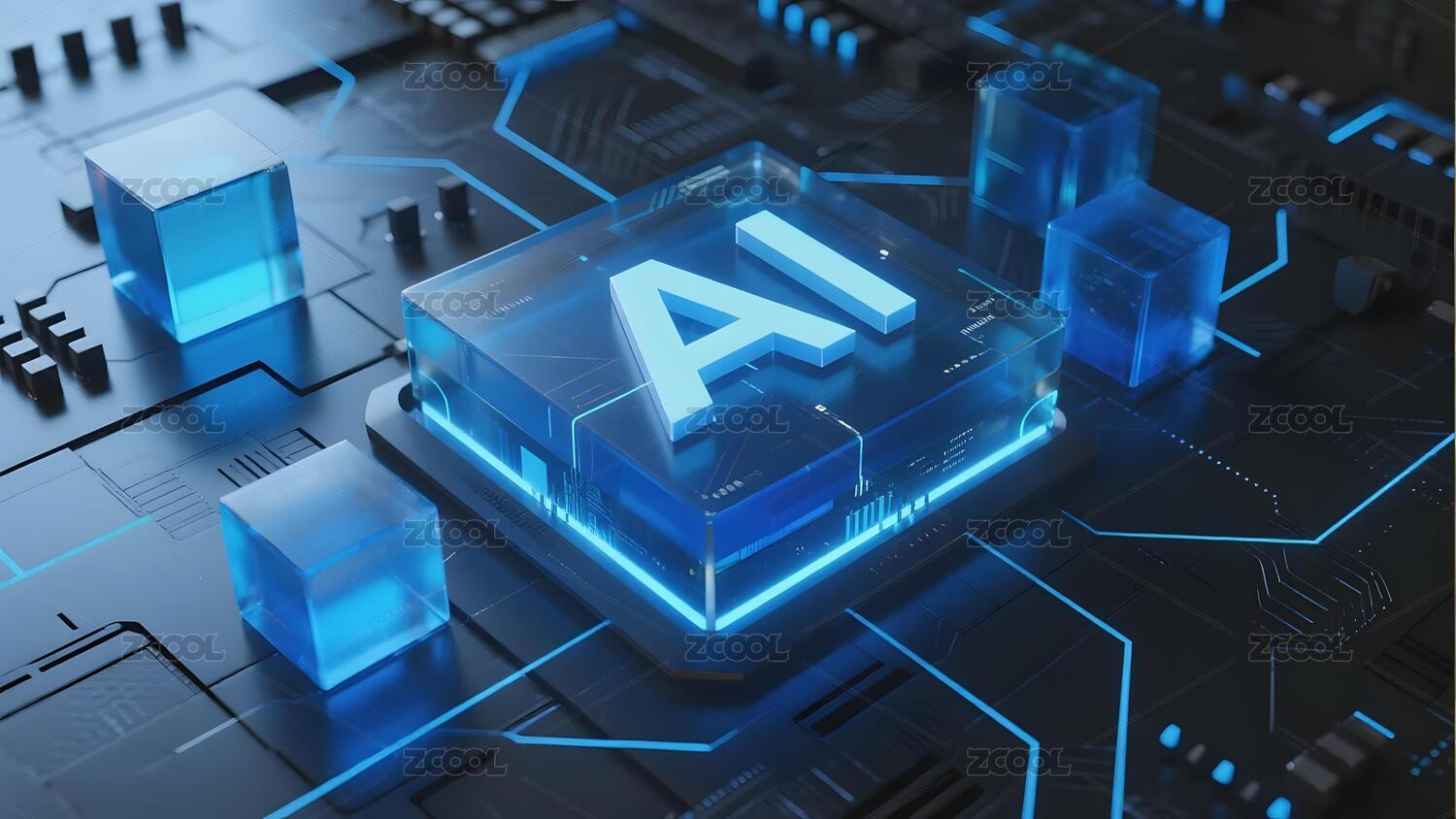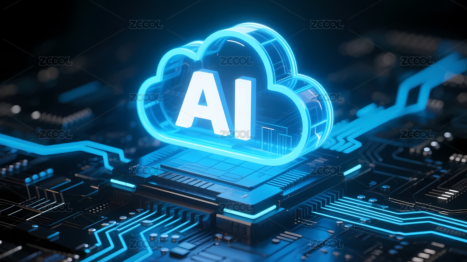 蓝黑电路板发光AI云