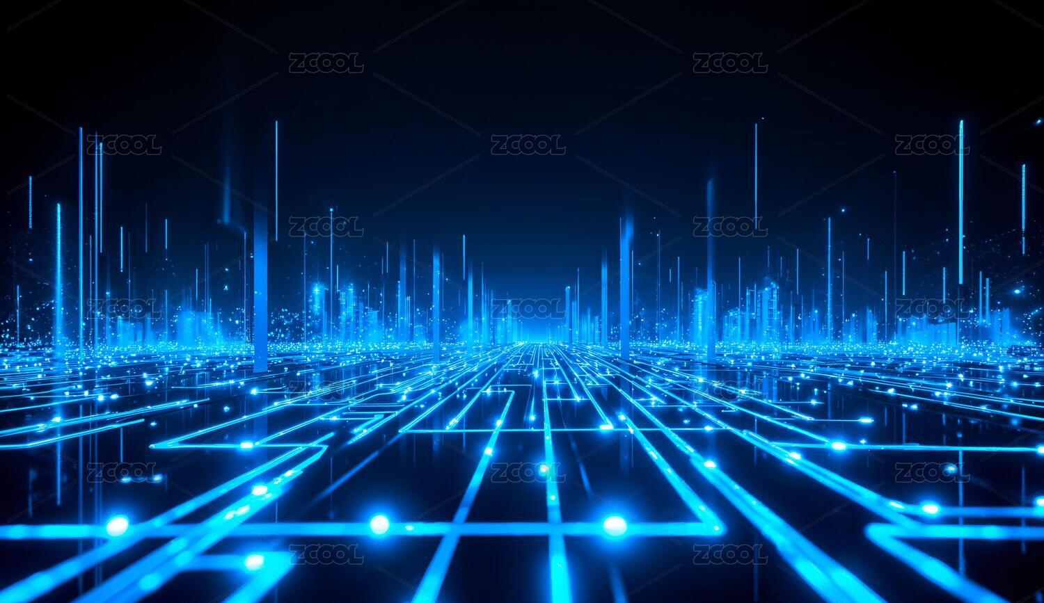 蓝色光柱构成的未来科技城市