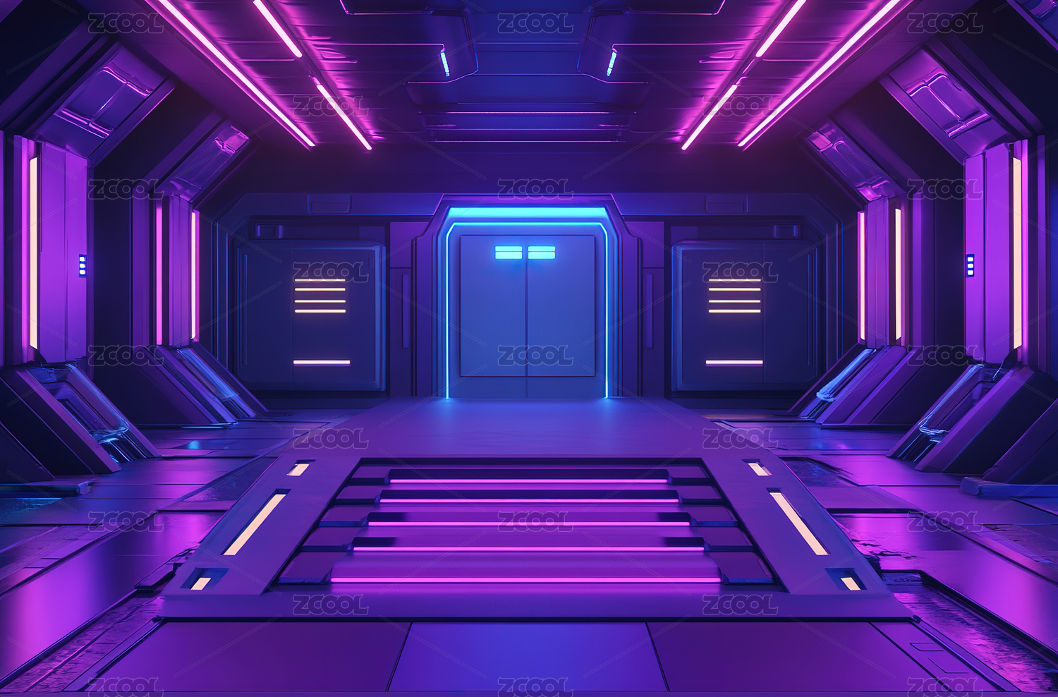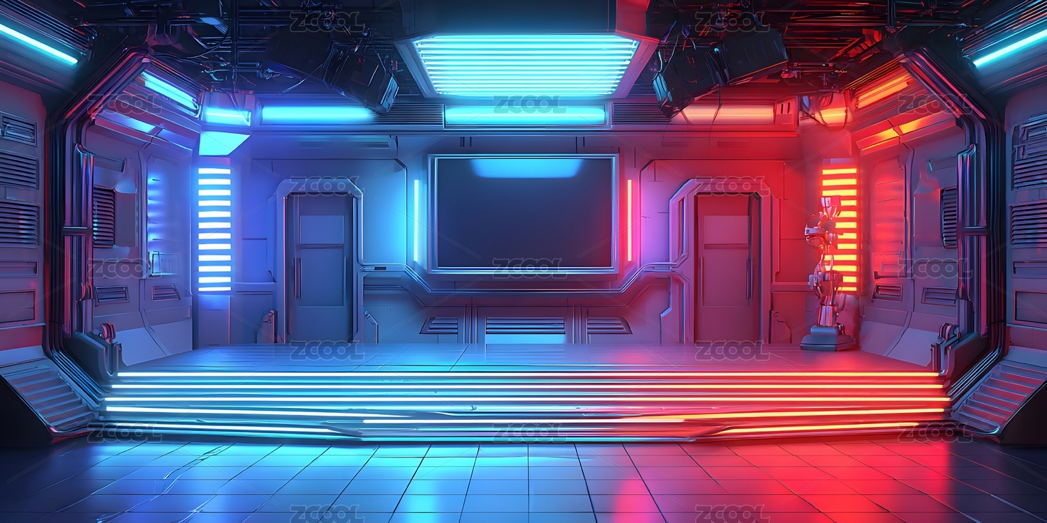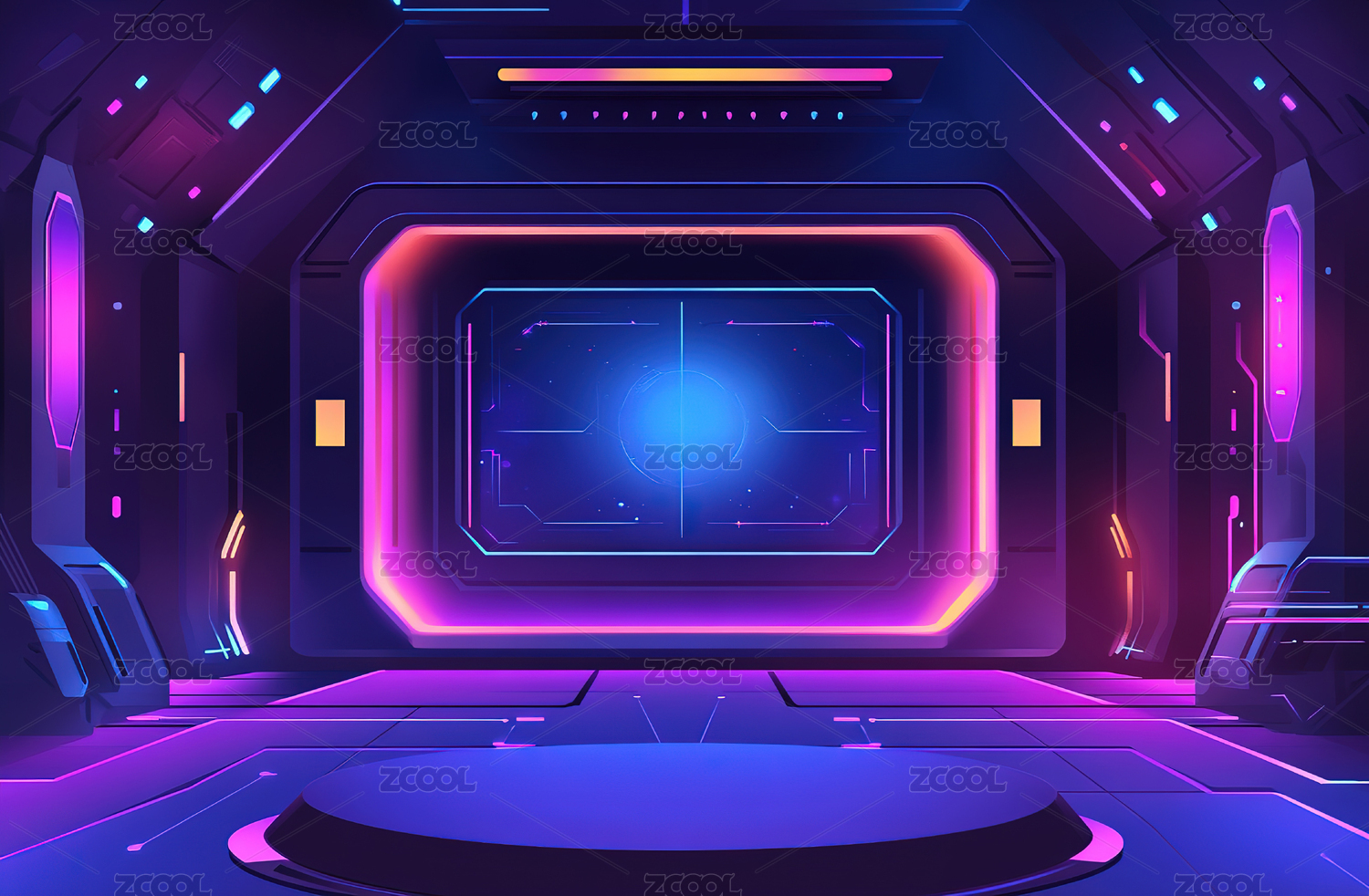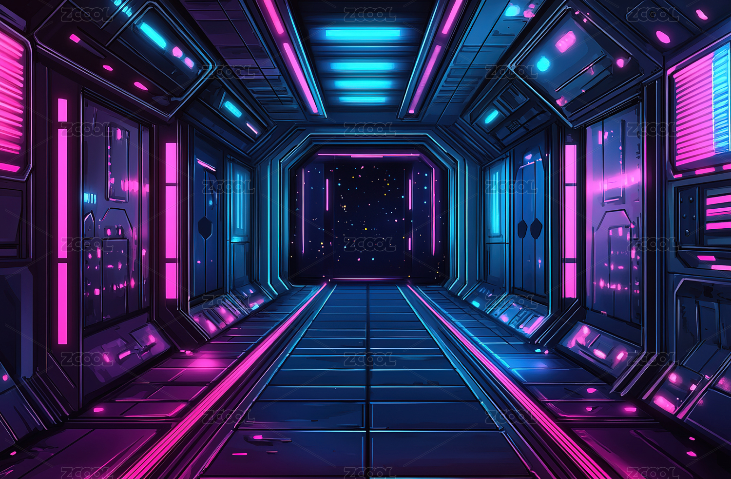 科技赛博朋克蓝粉色未来场景插画海报背景