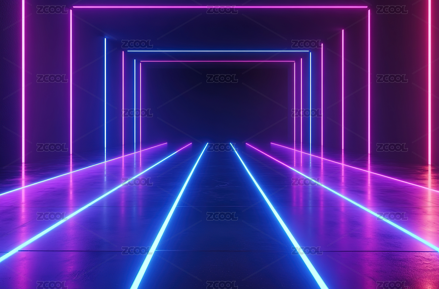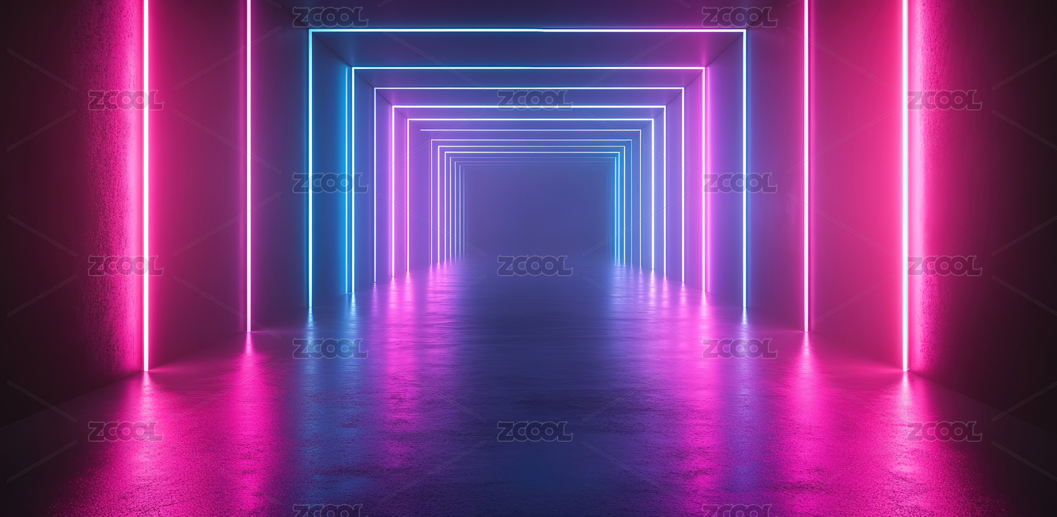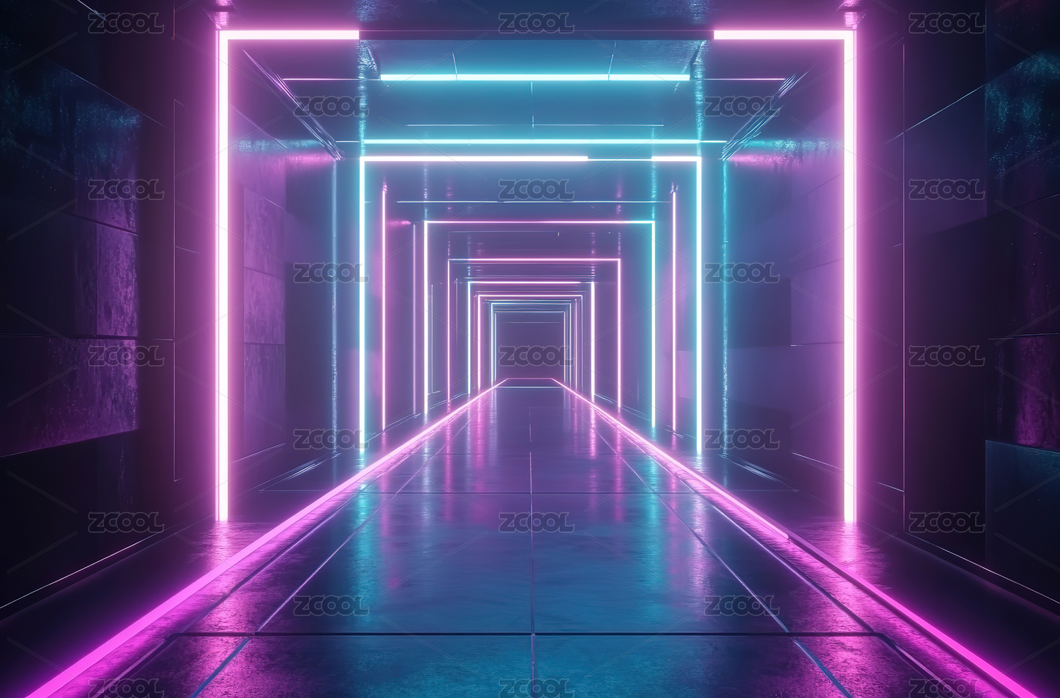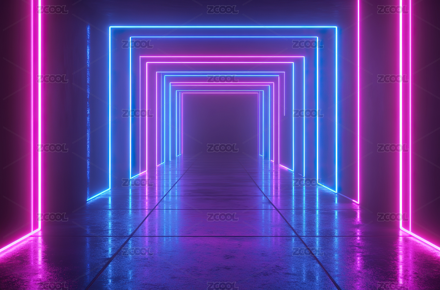 霓虹,隧道,空间,光线,粉色,蓝色,抽象,黑暗,未来感,几何