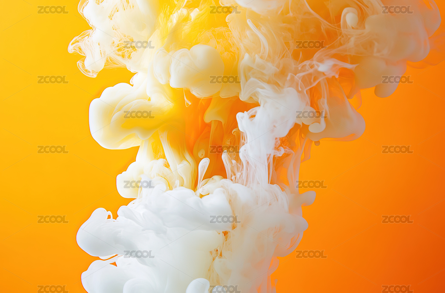白色背景下橙色烟雾的特写镜头