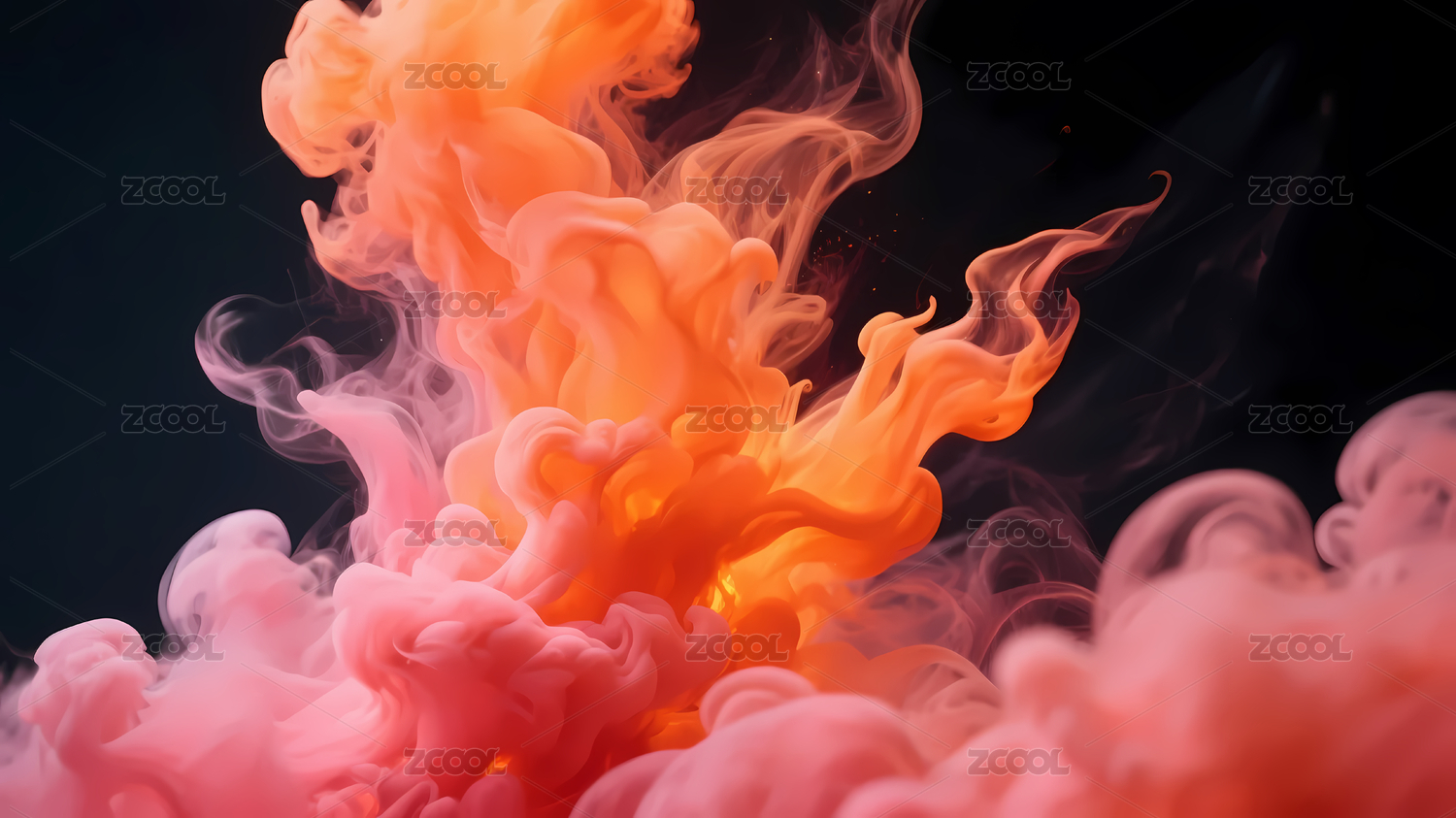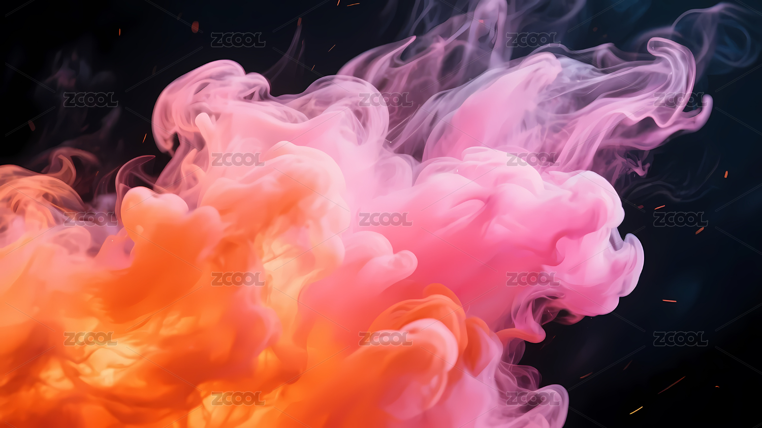 黑底橙粉色彩烟雾交织