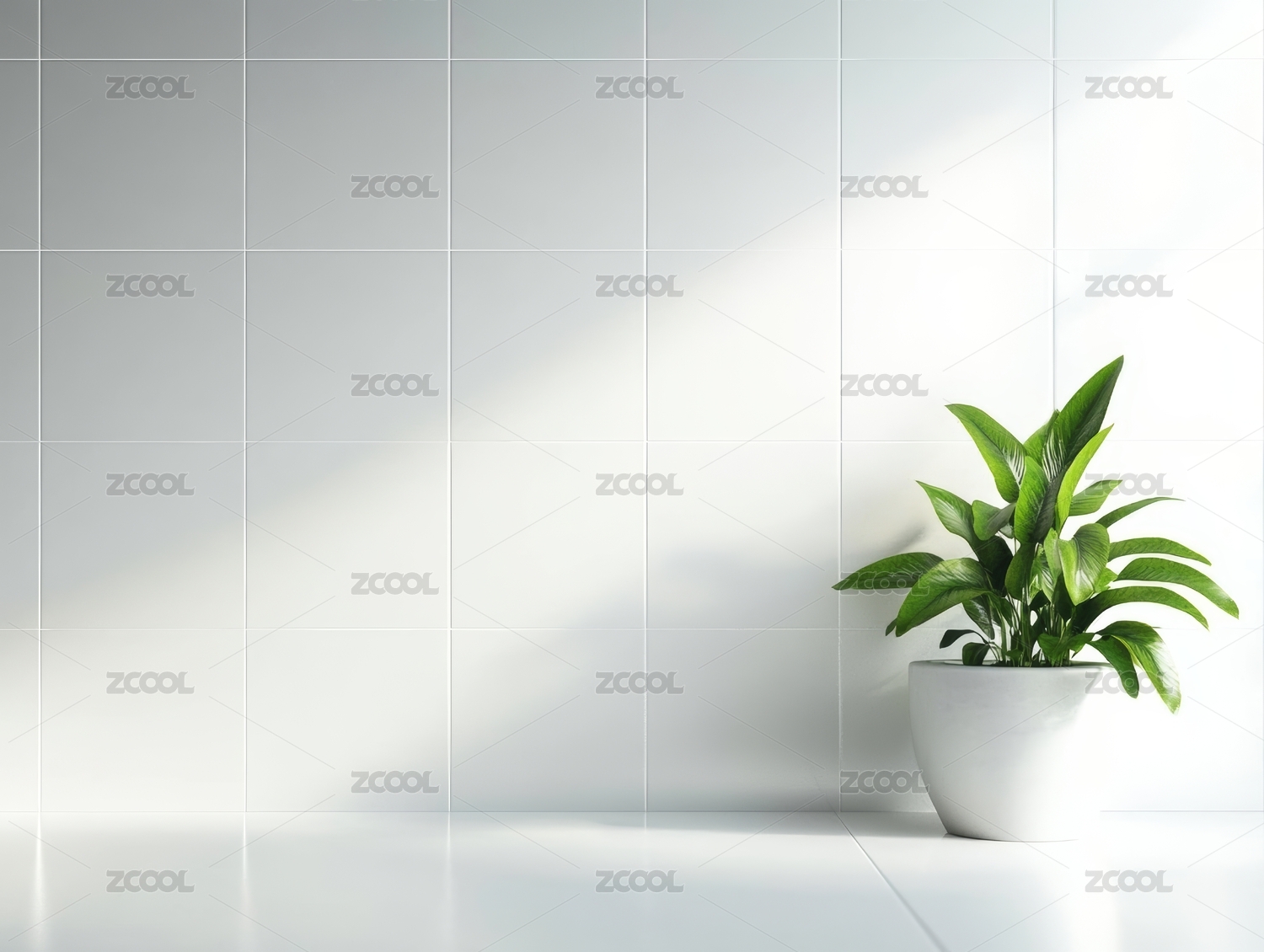 干净的室内白墙和绿植装饰简约空白渲染背景