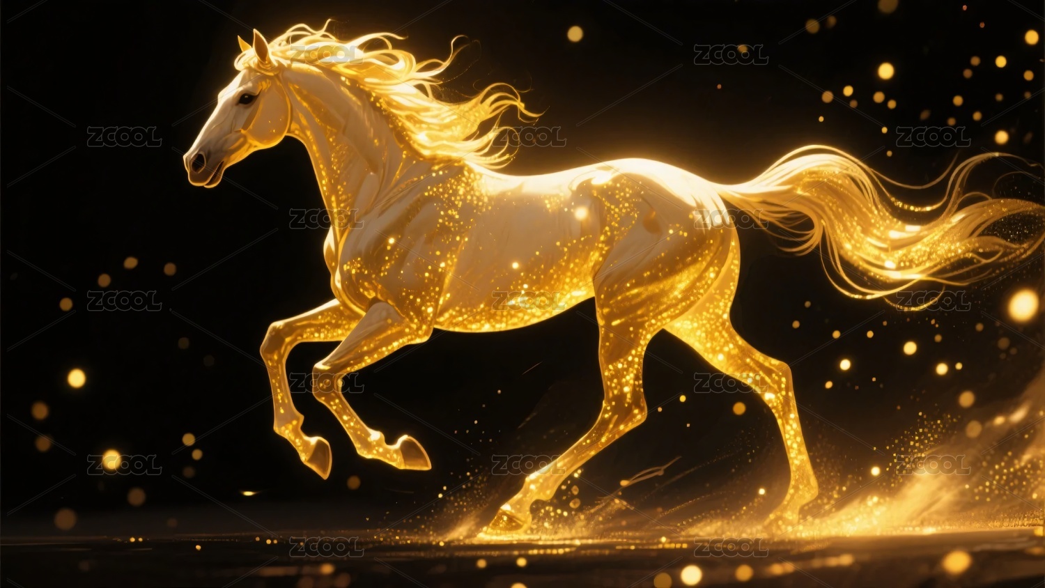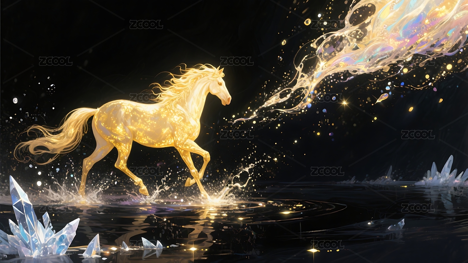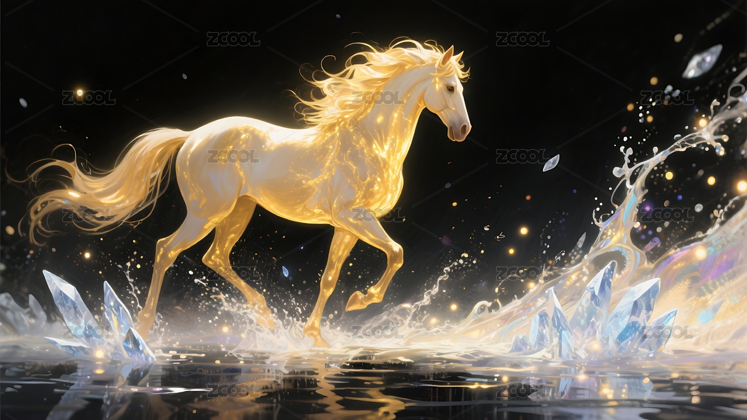金马,金芒,奔马,鬃毛,尾巴,飞扬,矫健,碎冰,飞溅,星光