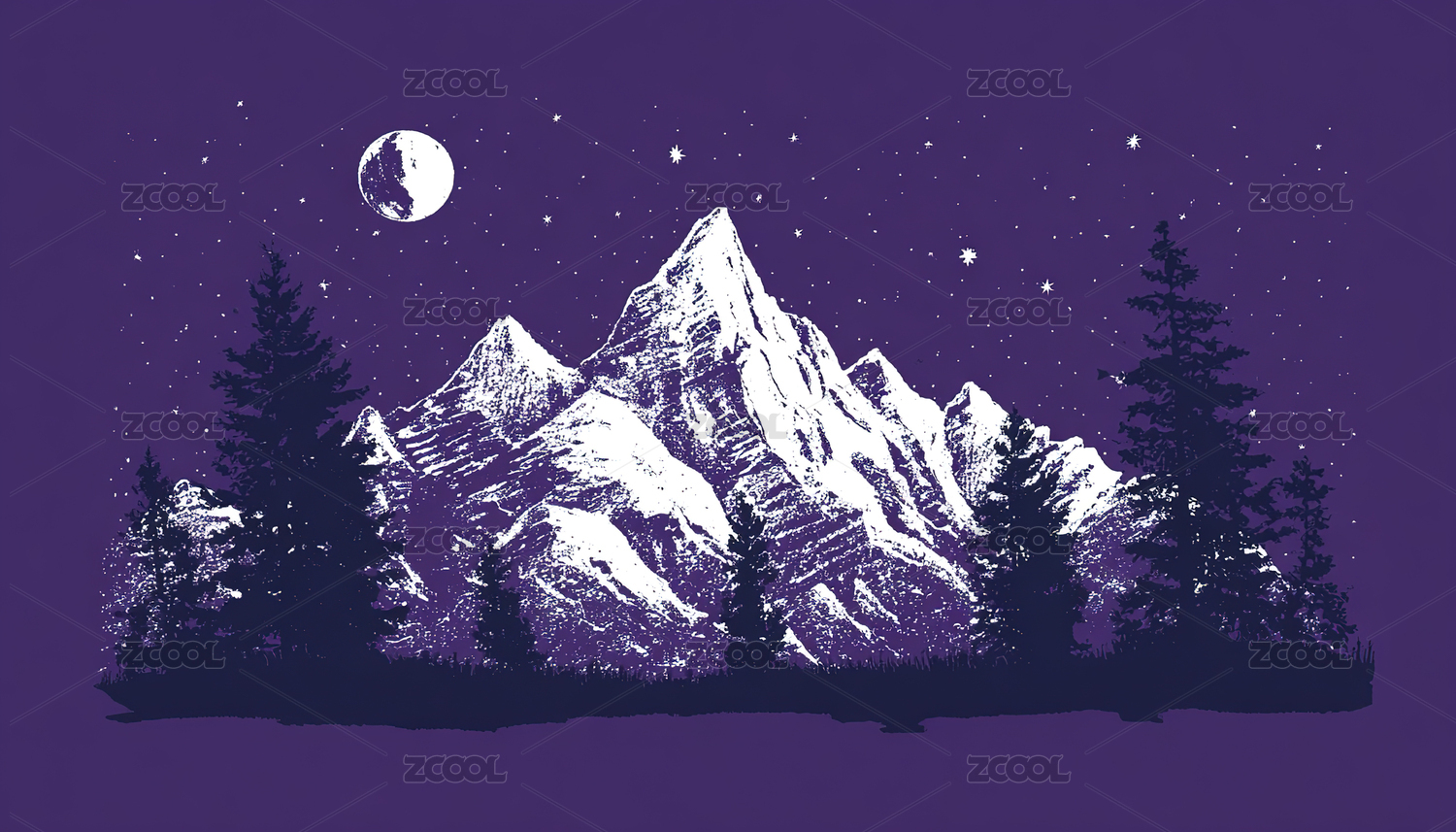 冬季雪山下的满月