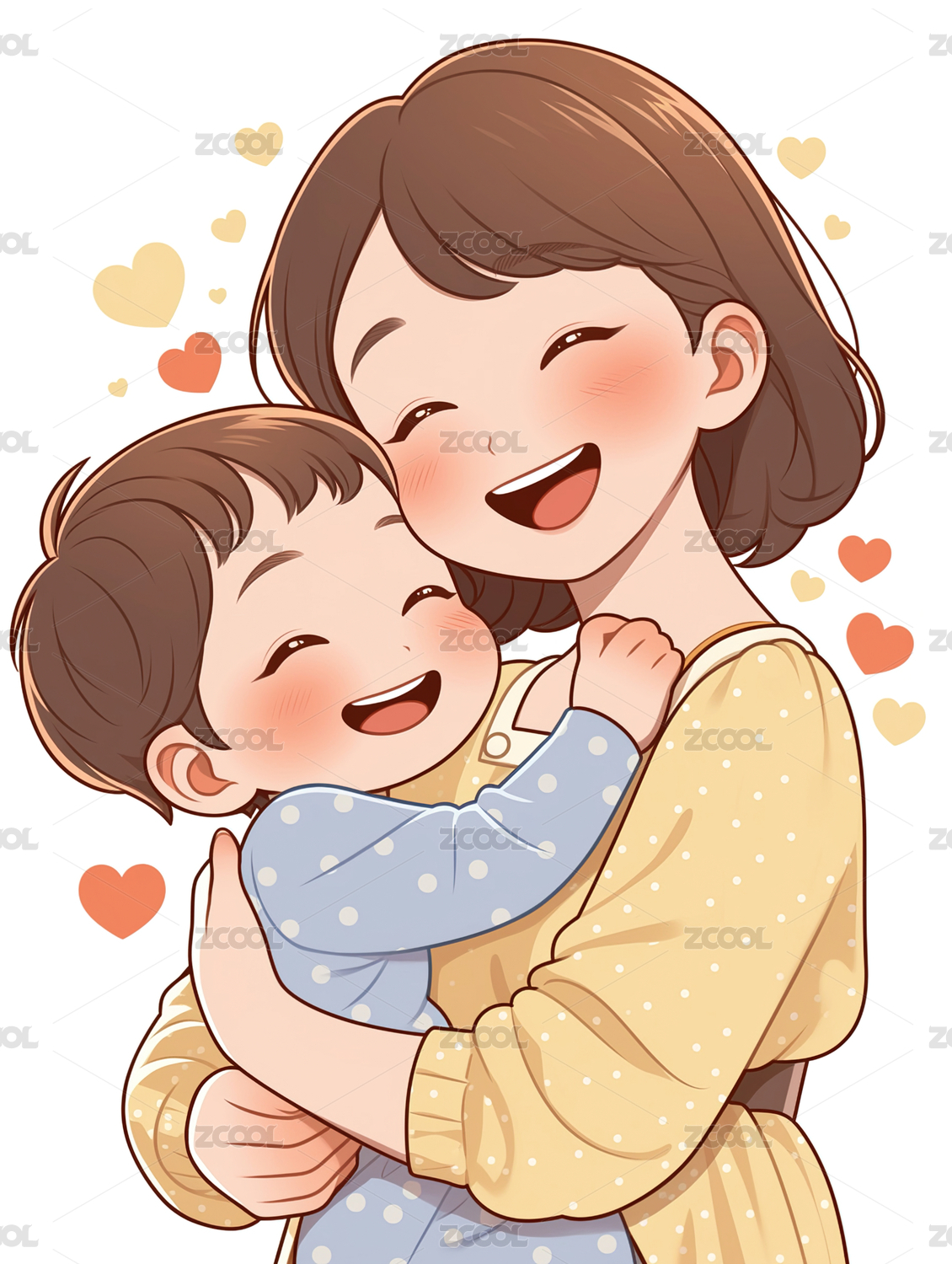 插画,动漫,家庭,快乐,妈妈,母爱,母婴,母子,女人,亲情
