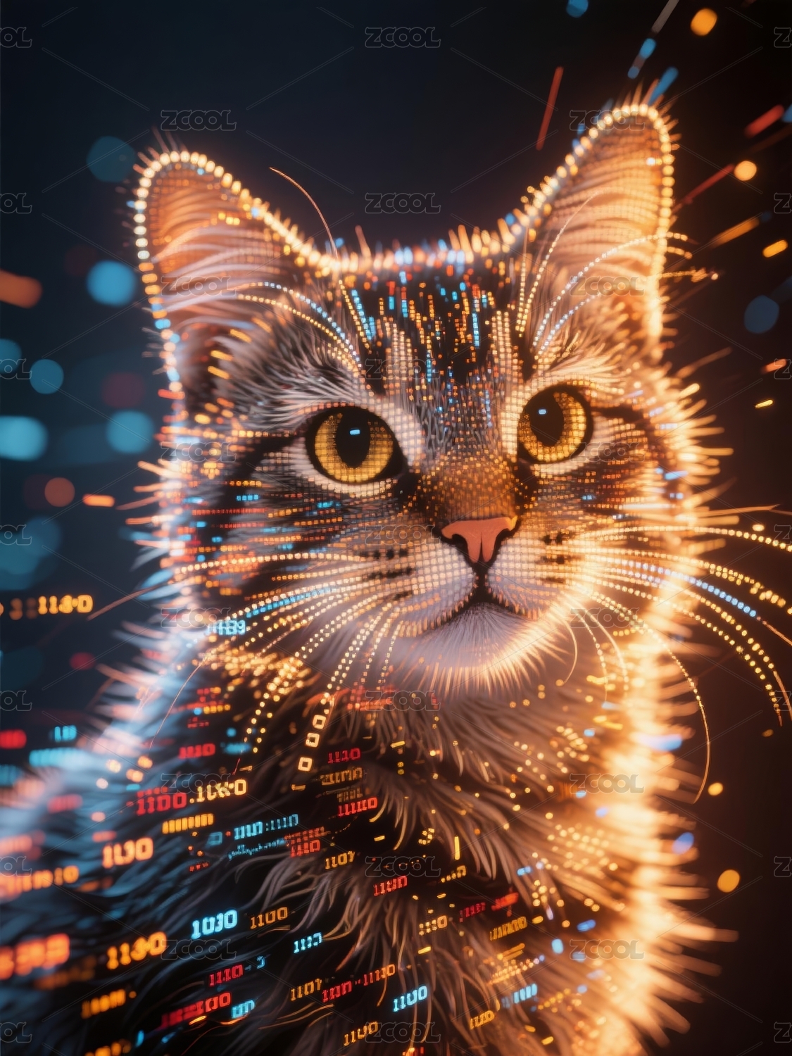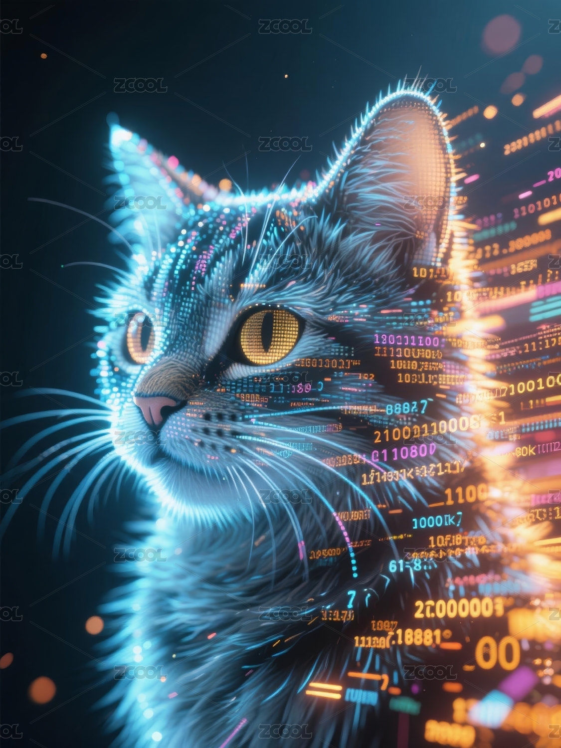 猫咪科技感艺术创作场景