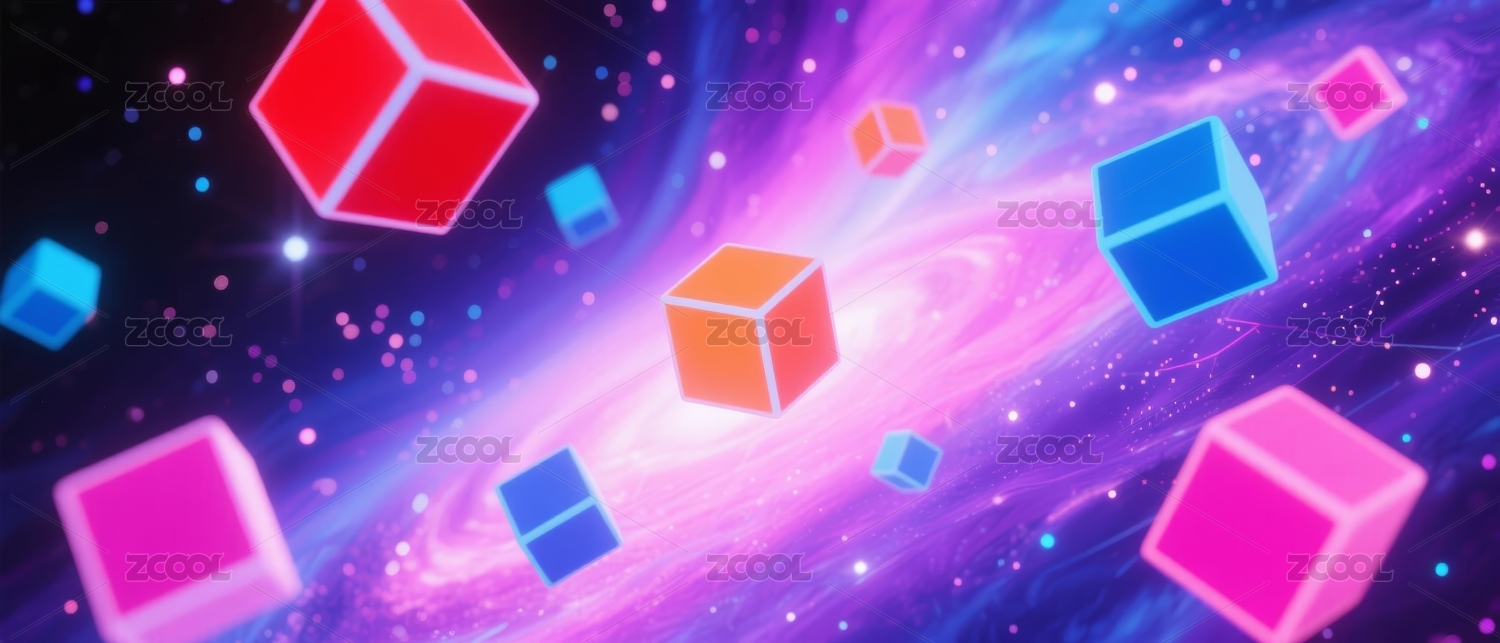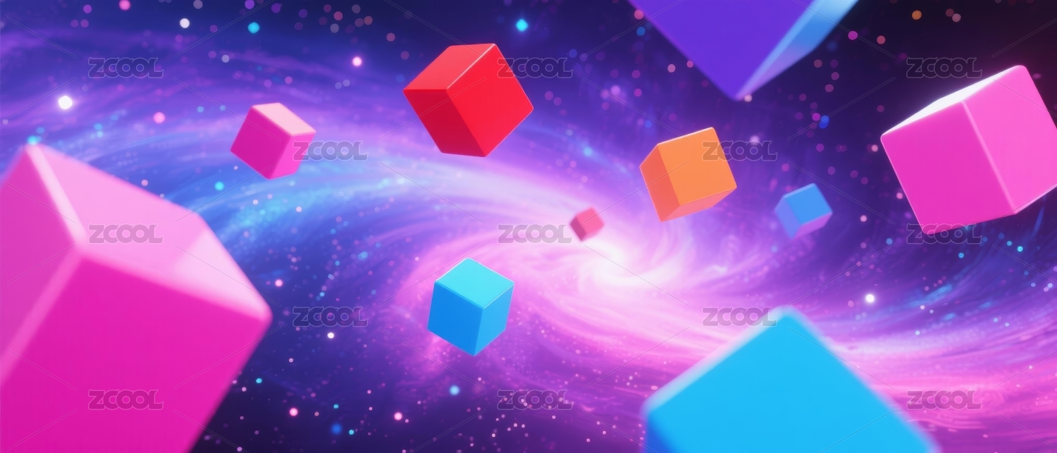 主视觉,彩色,方块,梦幻,宇宙,场景,立体,几何,星空,渐变