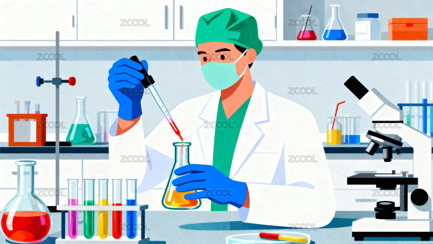 医疗医美化学生物实验创意插画设计