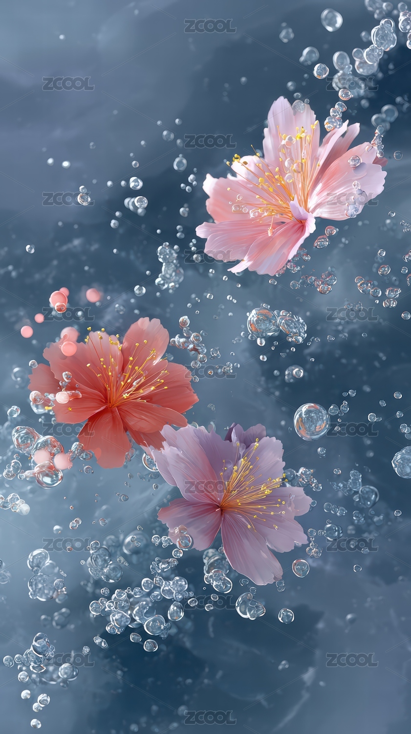 蓝色,光点,梦幻,细节,背景,艺术,花瓣,粉色,花卉