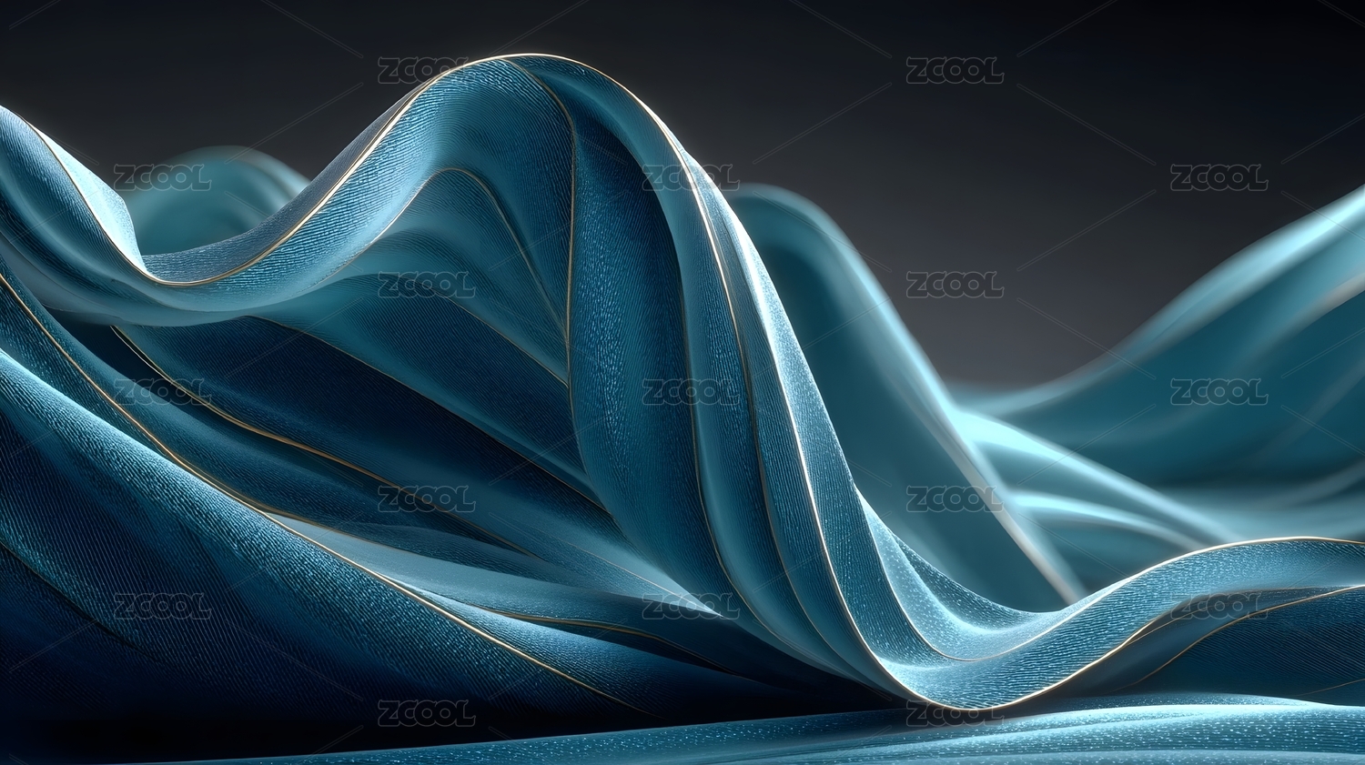 蓝色抽象丝绸褶皱弯曲抽象背景