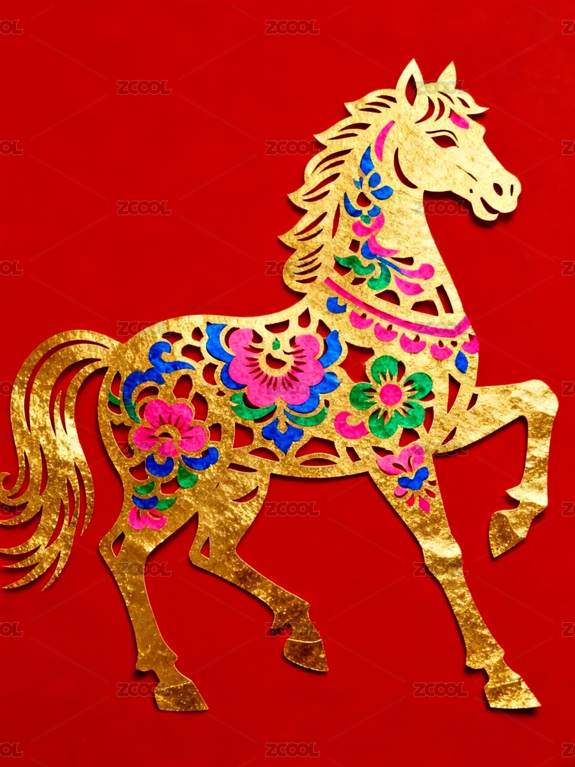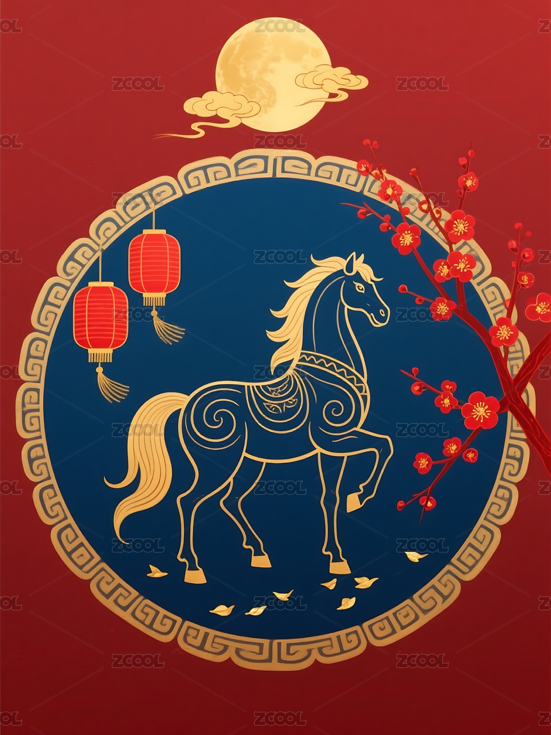 蓝底,金云,骏马,祥瑞,鎏金,静态,飘逸,鬃毛,长尾,矫健